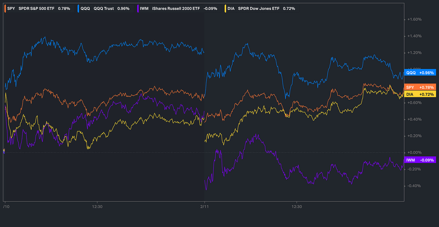 It’s been a fairly quiet week to start & the streak of Monday gap-downs has finally come to an end as the gap-down in futures on Sunday night was quickly reversed as the market shook off the reciprocal tariff headlines out of Trump & the indices actually kicked off the week with a gap up for a change… as of now, the Q’s are the best performing index on the week whereas small-caps are the laggard thus far, but a bigger week remaining ahead given the upcoming inflation data with the main question in focus being whether or not this recent blip in inflation was indeed a blip & or if inflation fears continue to re-emerge…