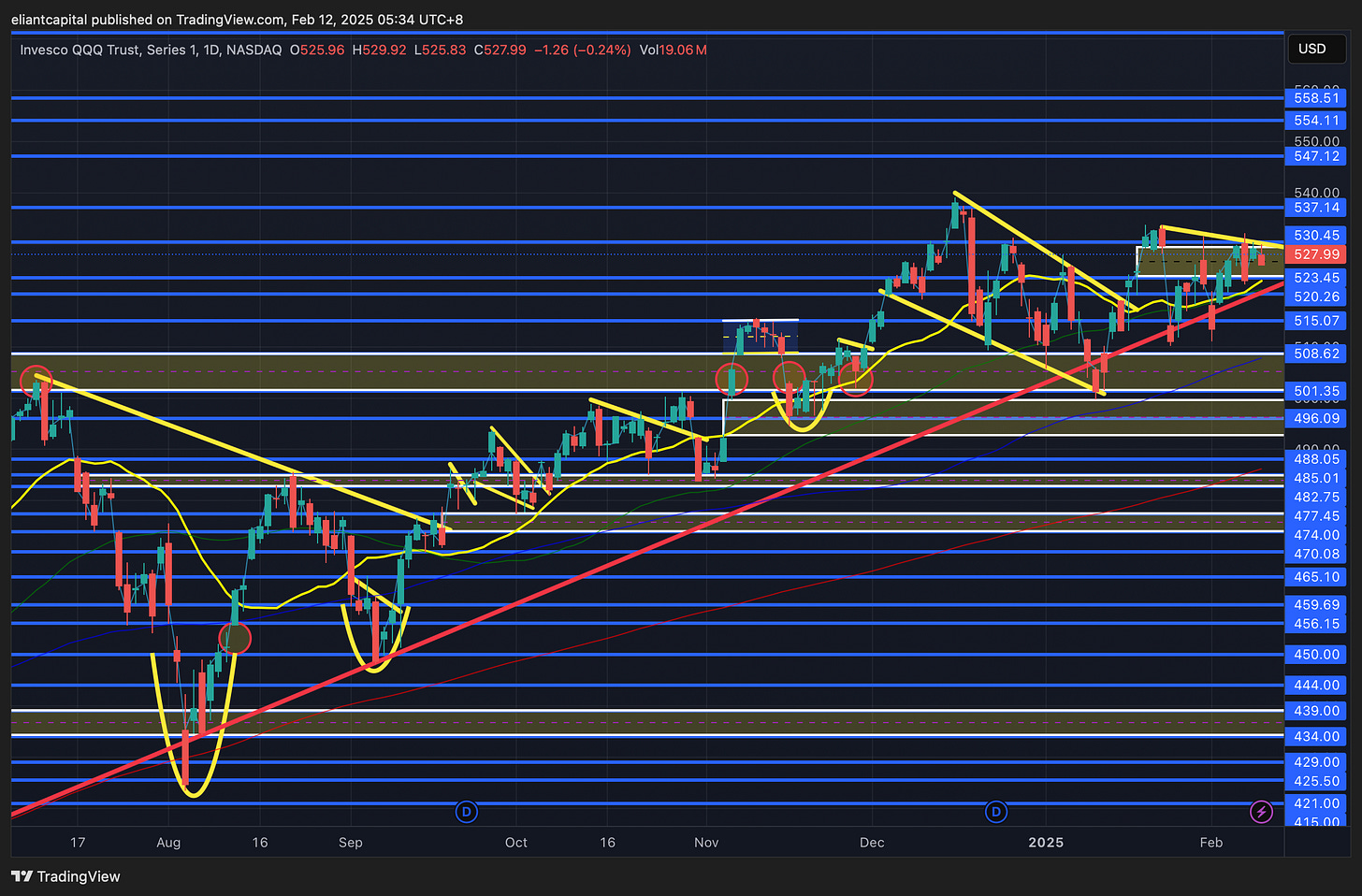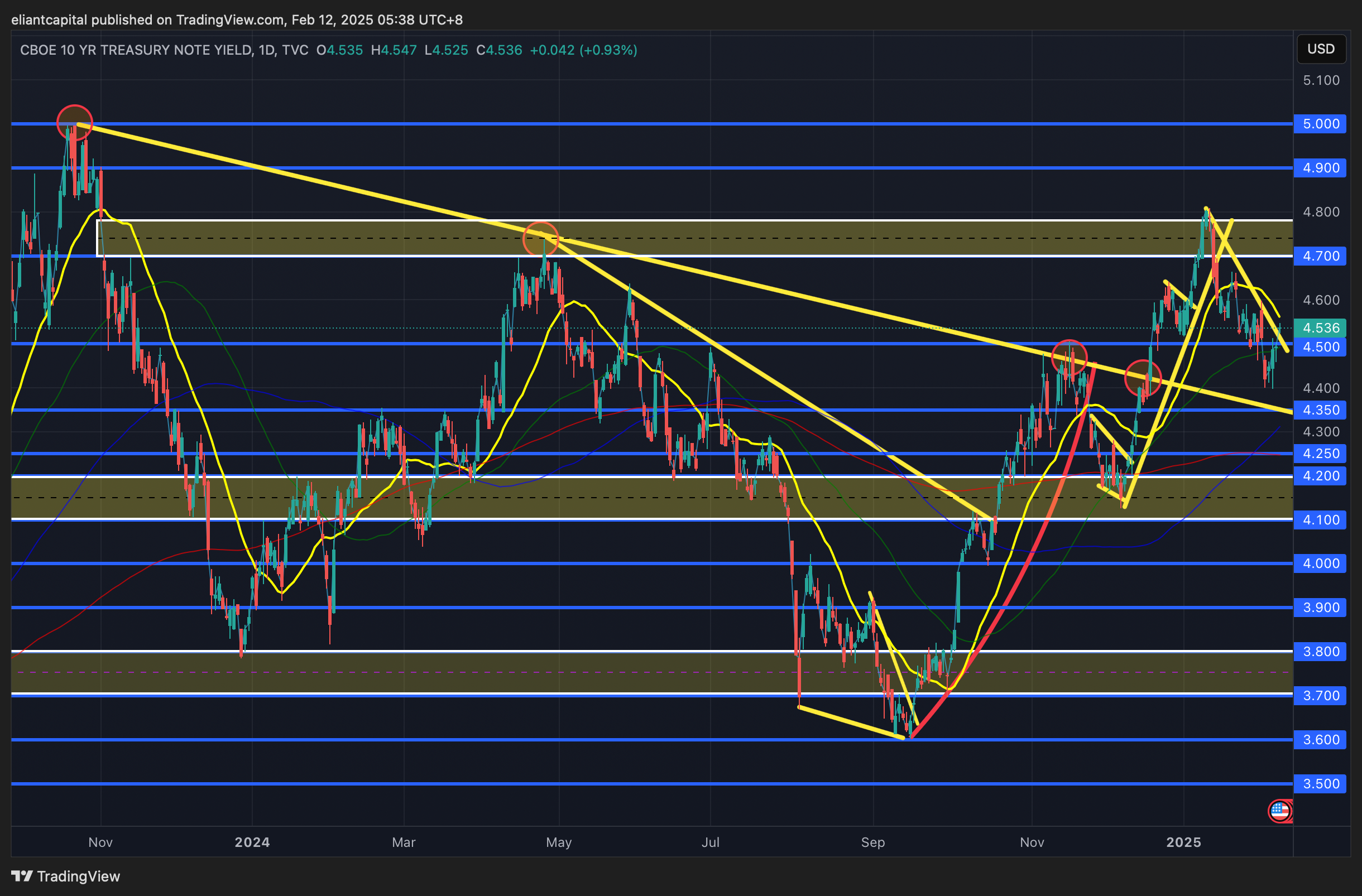 If we do get better than expected inflation data, it wouldn’t surprise me to see the 10Y head lower towards 4.4 - 4.35ish whereas if the inflation “blip” theory comes into question & or inflation ends up coming in hotter than expected, it wouldn’t necessarily surprise me if the 10Y heads right back to the 4.6s, but ultimately, I do think the 10Y ends up forming another lower high here as the biggest risks continue to be the economy starting to slow given DOGE plans to cut government jobs along with the current admin removing immigrants & being VERY strict on that topic.