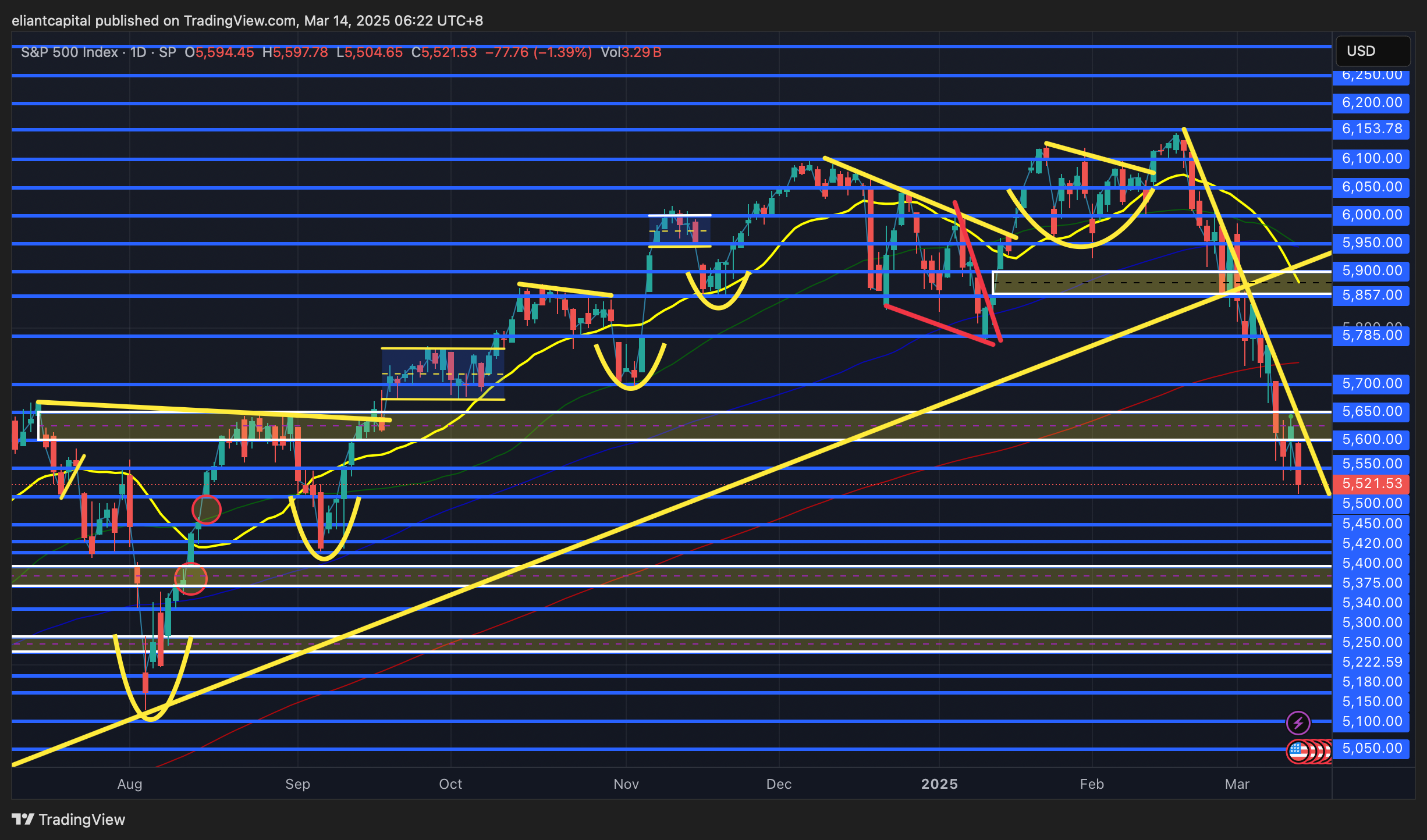 In regard to Spooz, again, we officially hit the 10% drawdown from highs entering a corrective phase & it’ll be quite the coincidence if that headline ends up marking the local low… despite the lackluster price action, do still think a countertrend rally is very much so in the cards… the markets are looking for any sort of headline to rally on & if we were to see a positive headline / some sort of clarity, I do think we can see Spooz rally back towards 5850 / 5900ish above… the question from there more so boils down to if thats the spot to look to degross longs / start getting short & or if the path to new ATHs will emerge… again, it likely will boil down to uncertainties regarding policy & or if things have cleared up or more so stayed the same (does seem like we’ve nearly reached the breaking point & individuals surrounding the admin are getting antsy for a settlement).