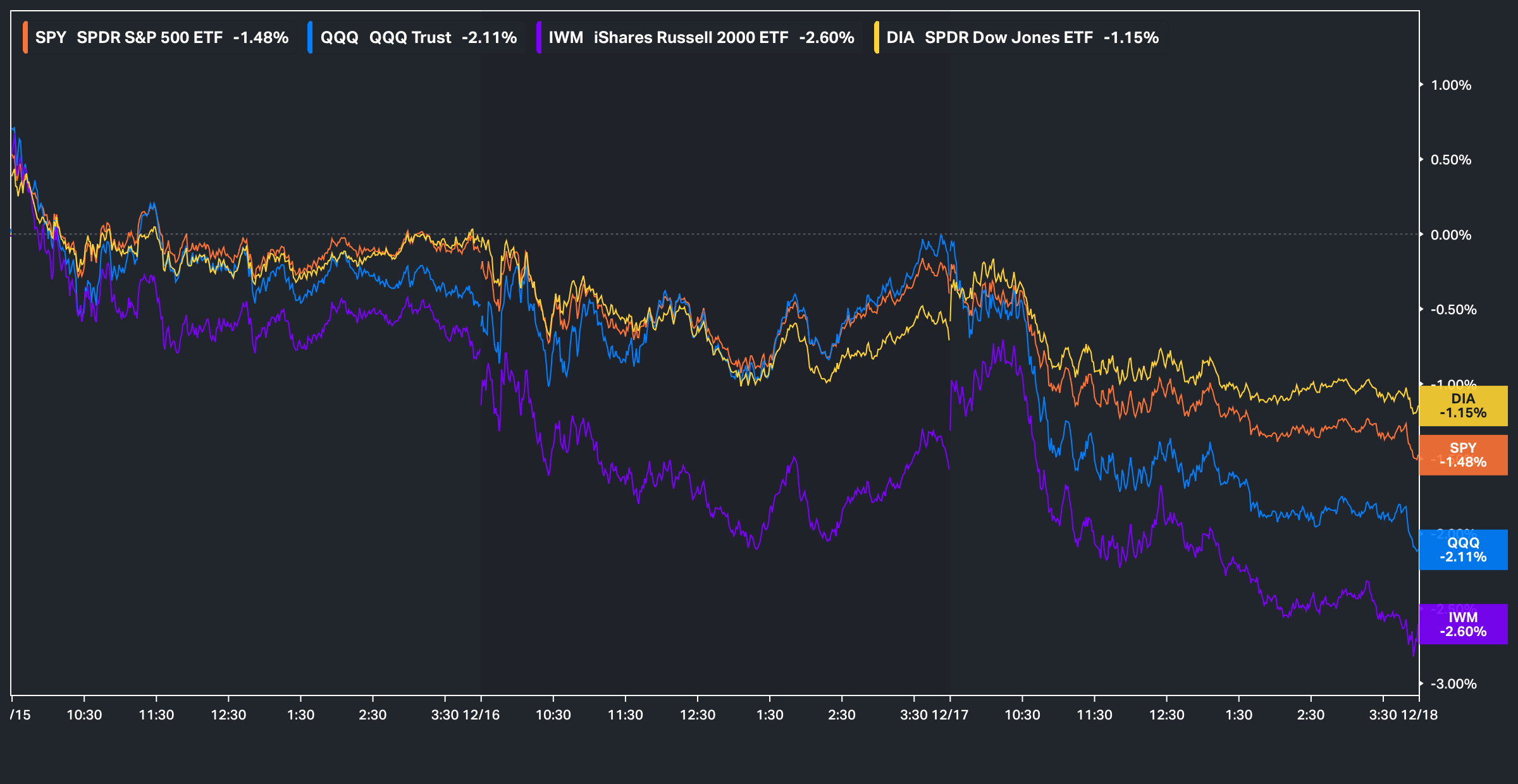 With the recent unwind in Beta / Lack of demand for risk-assets & the general jitters surrounding the entire AI-complex, Small-caps & the Q’s have been the worst performing of the indices, respectively down 260bps (IWM) & 211bps (QQQ) on the week, whereas the Dow has been the ‘best’ performing of the indices although still sits lower by 115bps on the week.