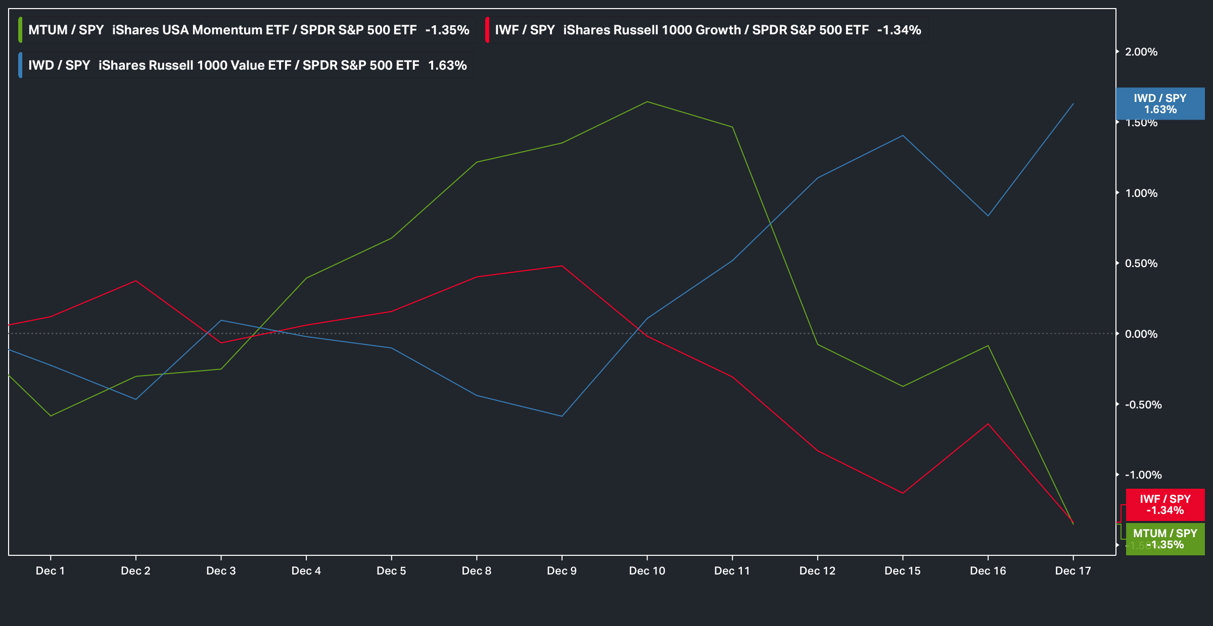 Month-to-date action reflects this skepticism clearly as growth and momentum-driven names have underperformed whilst value has outperformed, creating roughly a 300bps spread between the two groups.