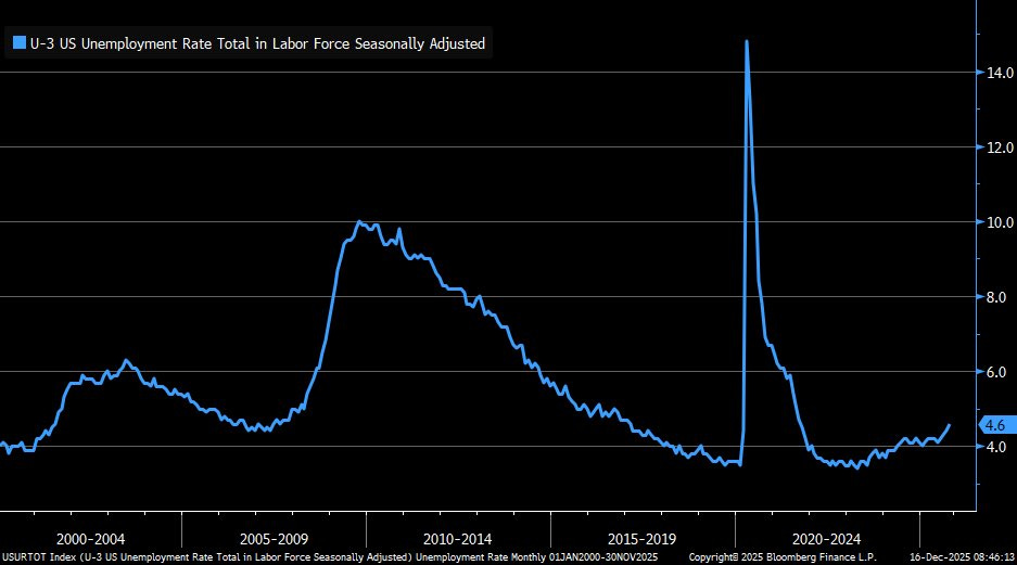 Moving away from the indices and turning to economic data, yesterday’s November jobs report continued to reinforce a gradual cooling in the labor market. Nonfarm payrolls rose by 64k, modestly ahead of expectations for 50k and a notable rebound from October’s revised decline of 105k. That said, the more important signal remains the unemployment rate, which continues to trend higher. After moving from 4.12% in June to 4.25% in July, 4.32% in August, and 4.44% in September, the unemployment rate rose yet again to a new cycle high, 4.56% in November.