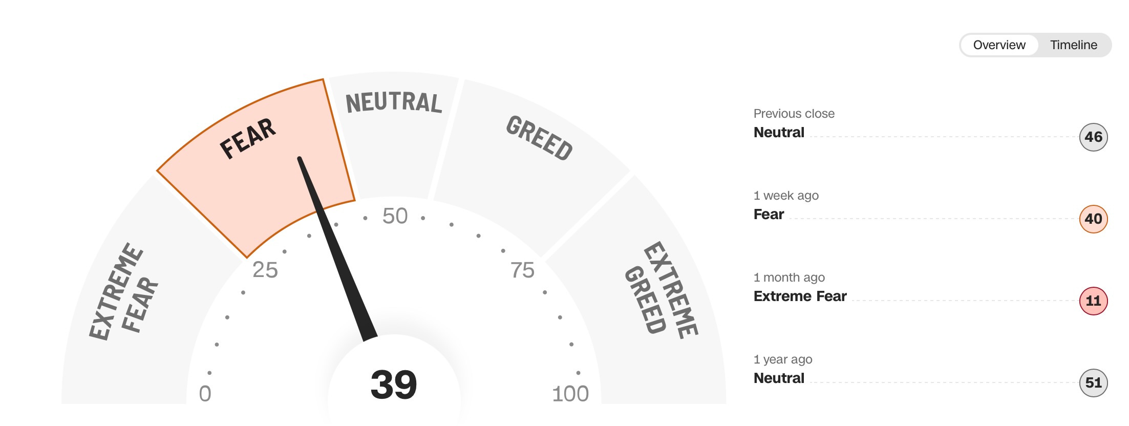 However, despite the rotations within the markets which has allowed for an expansion of breadth / healthier upside participation, the fear-greed index after having briefly worked back toward ‘neutral’ territory is now back within ‘fear’ territory: