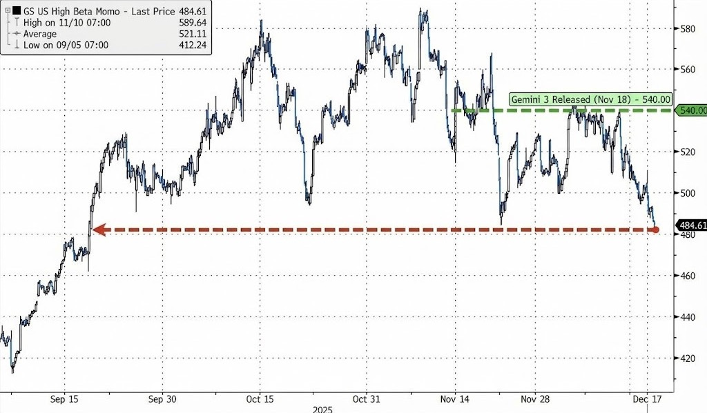 And in relation to high-beta, the Gemini-3 release on November 18th coincided with a clear inflection point in momentum as it more so kicked-off the recent larger unwind & high-beta / momentum-driven names have now wiped all gains from the last 3-months & are instead flat within the period.