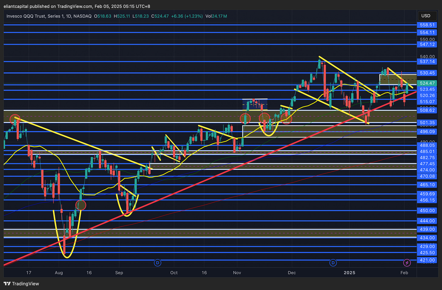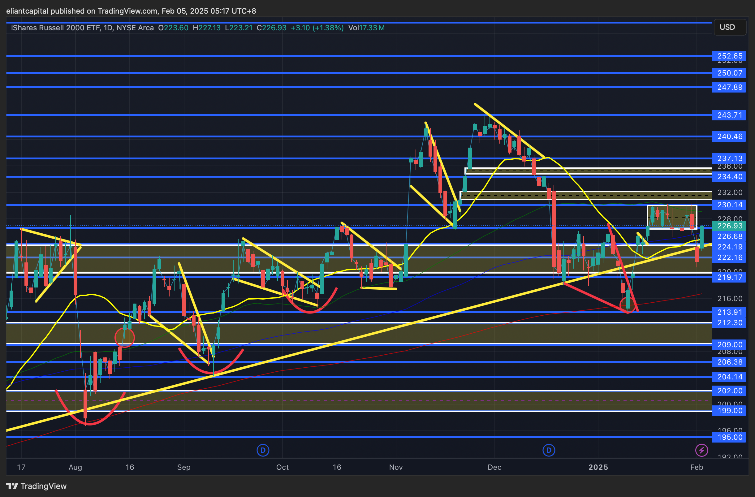 Again, not much has changed, but IWM did have a nice snapback off the lows & did end up closing above 226ish which was the prior breakout zone out of the consolidation it remained contained within for a few weeks prior… we ultimately still need to see IWM firm up above 230ish to propel it higher to the 234 / 237ish range above (potentially on goldilocks economic data / economy continues to hum along) & again, for the further upside followthrough, we likely would need to see bond yields continue to come in again (nice reversal in bonds today off the lows) along with potential for the tariff fears to continue to blow over / no surprise headlines from Trump as that would generally calm the markets along with the recent fears of inflation re-emerging which was a prior worry for the market earlier on in January.