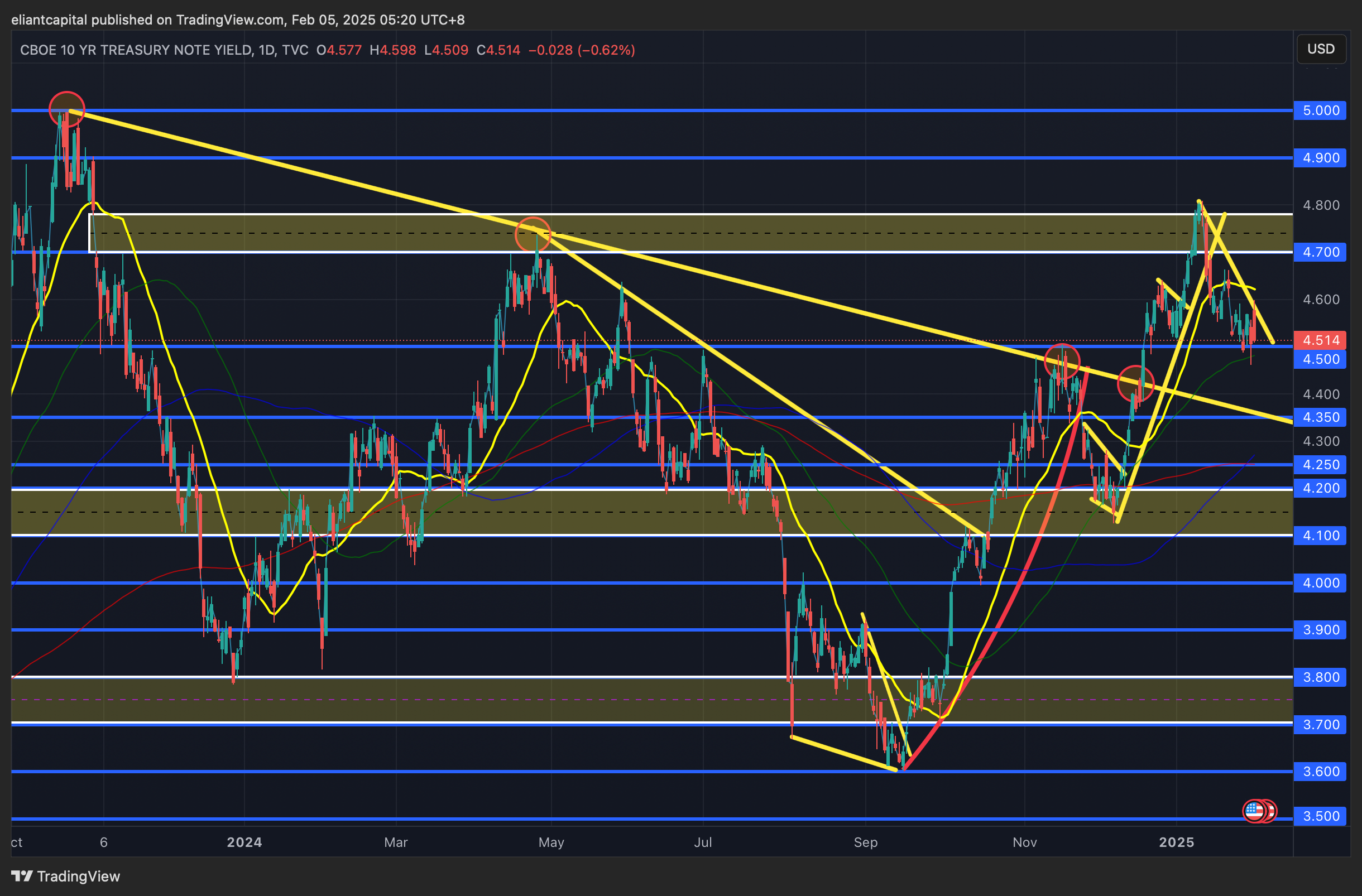 The 10Y has had a relatively quieter week, but initially started to see a spike today following the headline in regard to China looking to retaliate (not much of a retaliation at all in respect to tariffs), but following the JOLTs report, the 10Y continued to work lower all day & bonds ended up seeing quite the reversal / red-to-green move off the lows. Heading into the remainder of the week, again, we have a few job data points remaining, but most importantly, we have NFP #’s Friday. The prior report was a complete blowout of expectations which is what led to the big pop in the 10Y towards 4.8s, and funny enough, thats exactly when the 10Y pretty much made its peak before kicking off this recent decline. As of now, jobs are expected to come in around 169kish & the UER is expected to remain unchanged at 4.1ish… a fairly goldilocks # & if that were to be the case, I would expect bonds to bid… especially considering the recent tariff fears have been put to rest… for now at least.