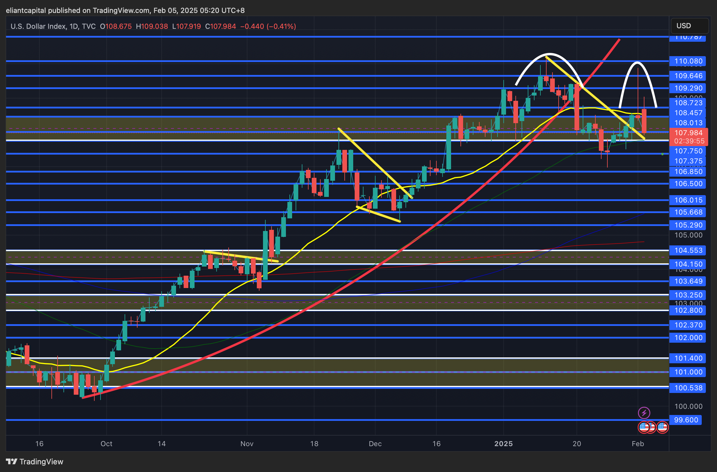 A pretty active week in FX markets… initially, we saw a huge surge in the dollar on Sunday night as it was assumed that Trump would follow-through & enact tariffs on both Mexico & Canada for 25% & then China for 10%, but following into Monday morning, Trump had a positive discussion with the Mexico president & ended up pushing back tariffs a month & the same thing happened with Canada as well. As a result, we saw quite the reversal in the dollar as it now sits below 108 after initially tapping the 110s on Sunday night.