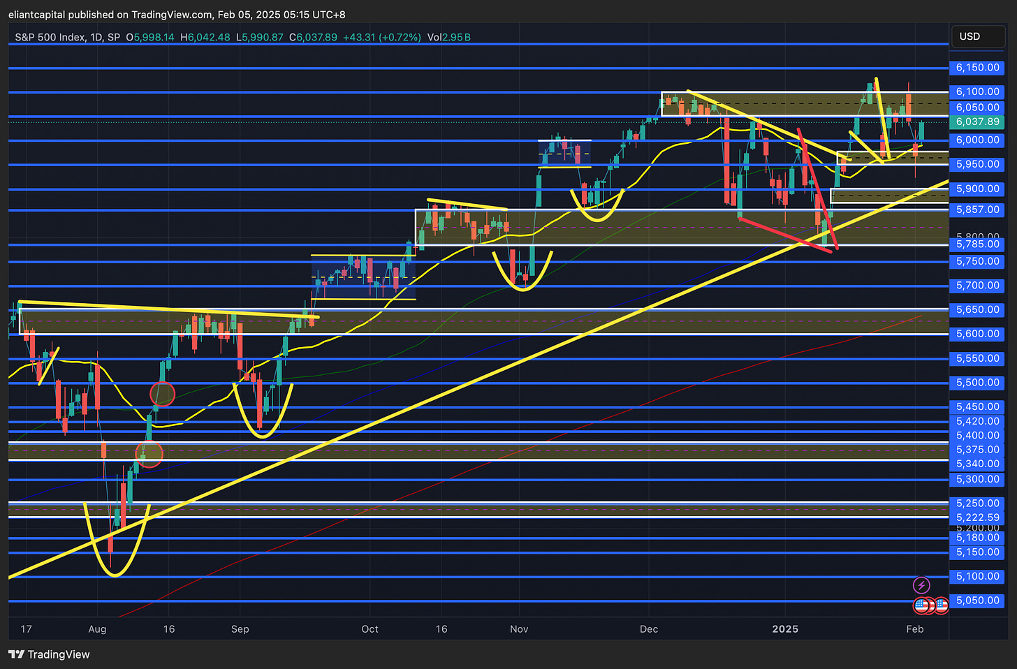 Another volatile kickstart to the week… similar to last Monday, but thus far, the dip has been bought & the indices are actually positive on the week. The reason for the volatility more so kicked off when Trump stated he planned to implement 25% tariffs on both Mexico & Canada along with a 10% tariff on China late afternoon on Friday… the fear & hysteria carried through the weekend & the dollar ended up surging in the overnight session on Sunday evening as the Mexican Peso & Canadian dollar both saw quite the decline, as well as the Euro too, but shortly following Monday open, Trump & the president of Mexico had a phone call & it more so seems like Trump “bent the knee” as Mexico agreed to all of the terms as they previously came in, but Trump decided to backoff on the tariffs and push them back to March 1st… same outcome happened for Canada, again, tariffs were essentially pushed back a month & “trade talks went well.”