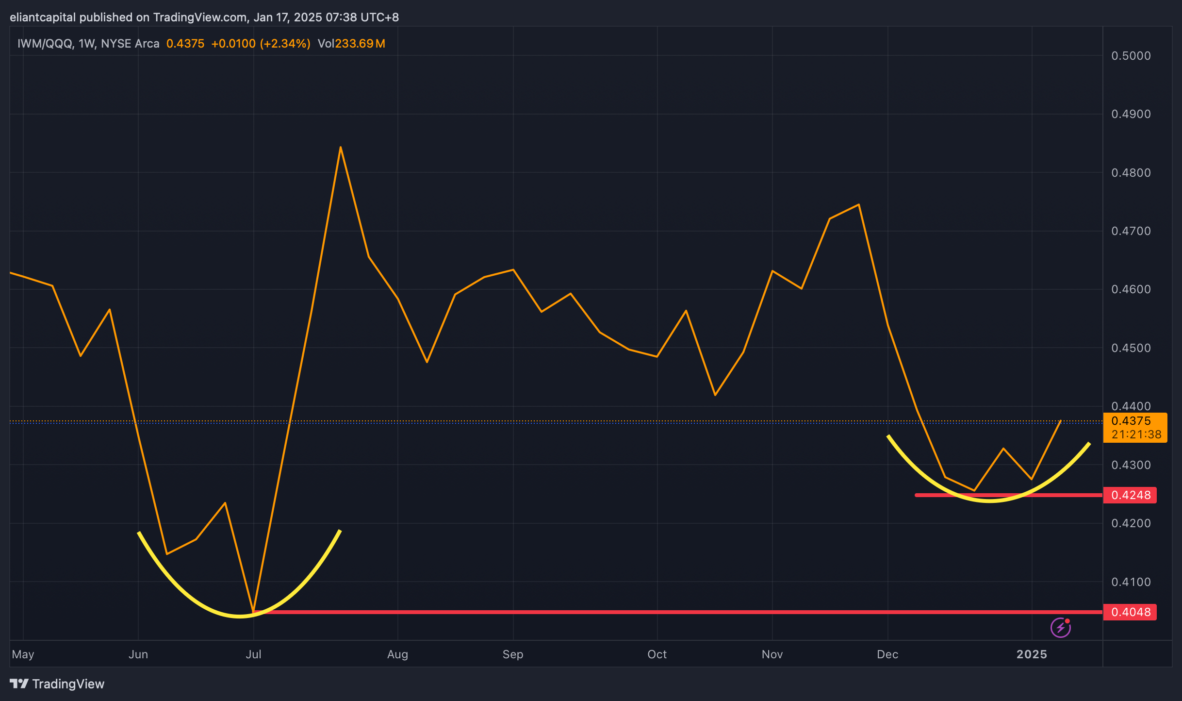 As the week has progressed, the Q’s have still remained as the worst performing index on the week & there was over a 100bps spread between the Q’s & Small-caps today & it continues to look like IWM/QQQ could’ve made a higher low which would signal a further rotationary market if this were to pan out & thats exactly the action we’ve been seeing these last few days… capital shifting elsewhere from the Q’s to other sectors… rotationary & healthy in all honesty.