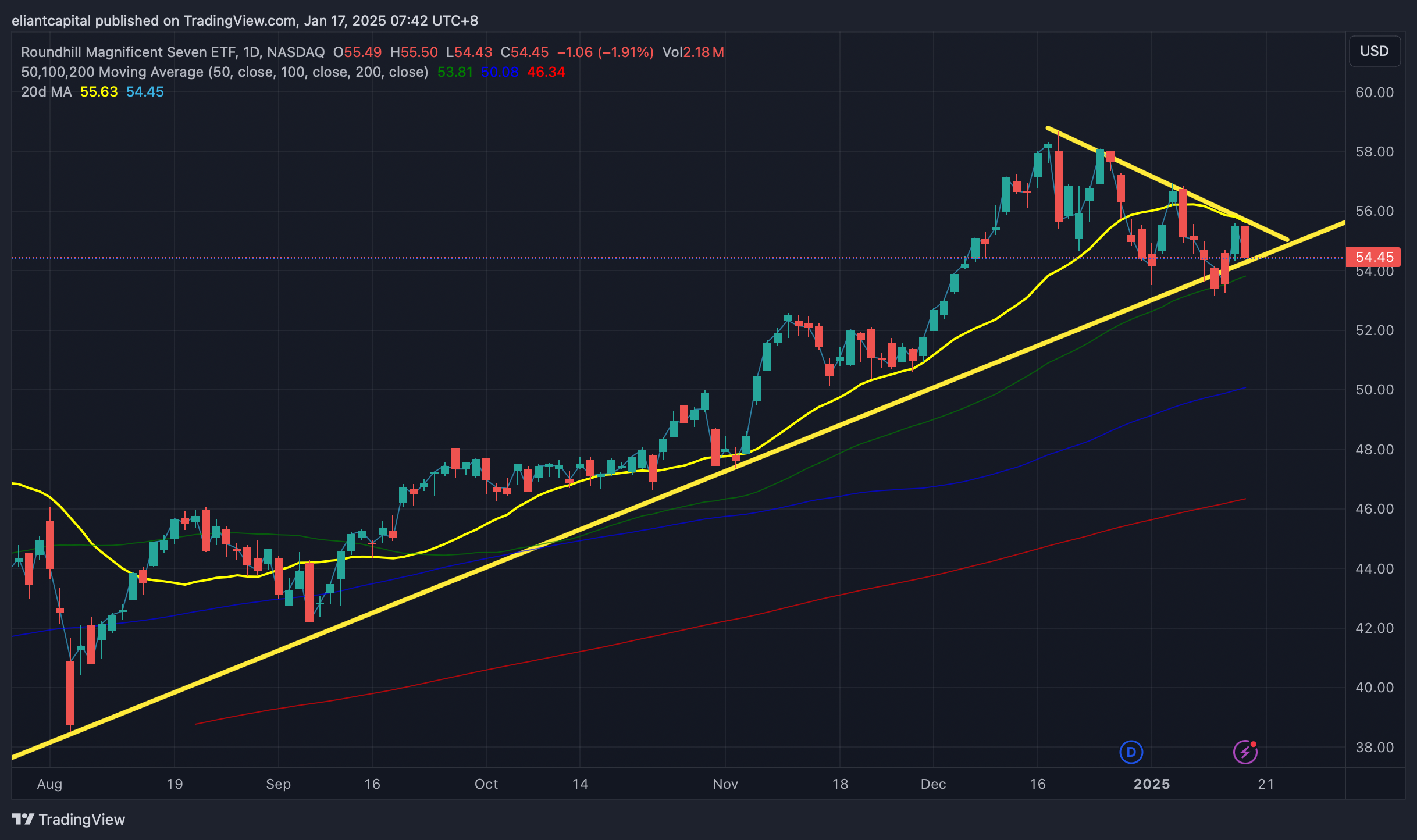 Mag-7 has been the contributing factor to the recent weakness we have seen in the Q’s as the path of lower highs has remained ever since peaking in Mid-December… currently sitting on a support TL dating back to the Mid-’23 lows, but below that, I could see it getting a bit more slippery… potentially see MAGS retest the November highs near 50 as a backtest of the election breakout, which would also naturally likely lead to further rotation in the markets as well.