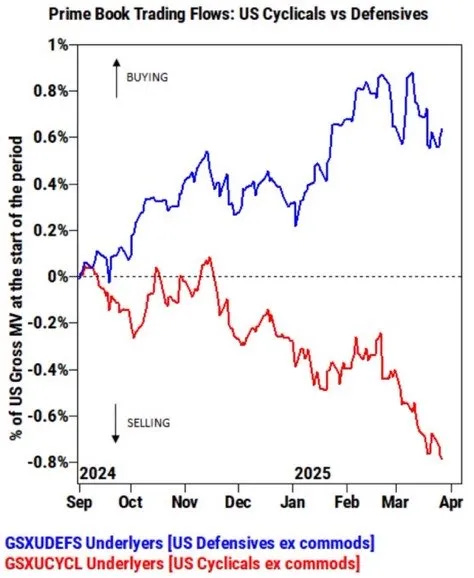 Same can be said in terms of the slowdown / recession trade, but we’ve seen individuals pile into defensives whilst selling cyclicals simultaneously…