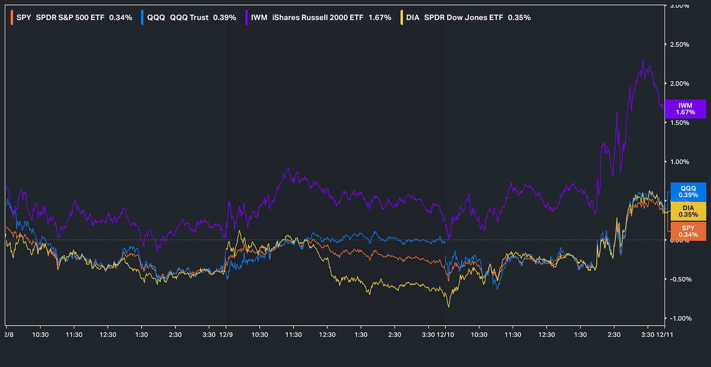 With the faulty ‘Hawkish Cut’ consensus & Powell instead surprising with a more Dovish lean, sure enough, Small-caps have been the best performing of the indices on the week by quite the margin comparatively to the remainder of the indices whilst also making a new ATH as well, currently trading higher by 167bps on the week, whereas the remainder of the indices are mostly trading inline altogether, up a modest 35bps on the week.