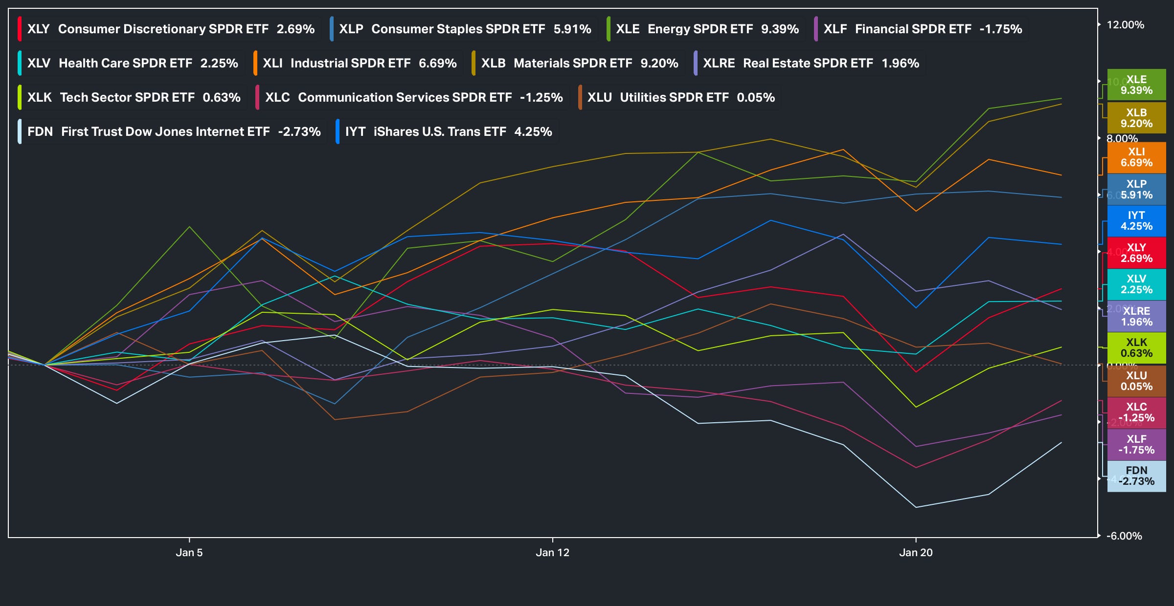 5/6 top performing sectors YTD are all cyclical:
