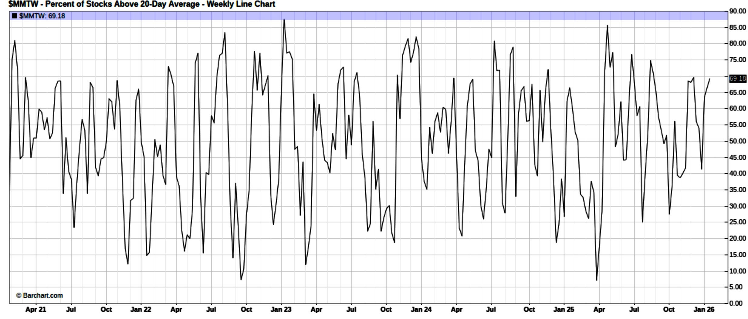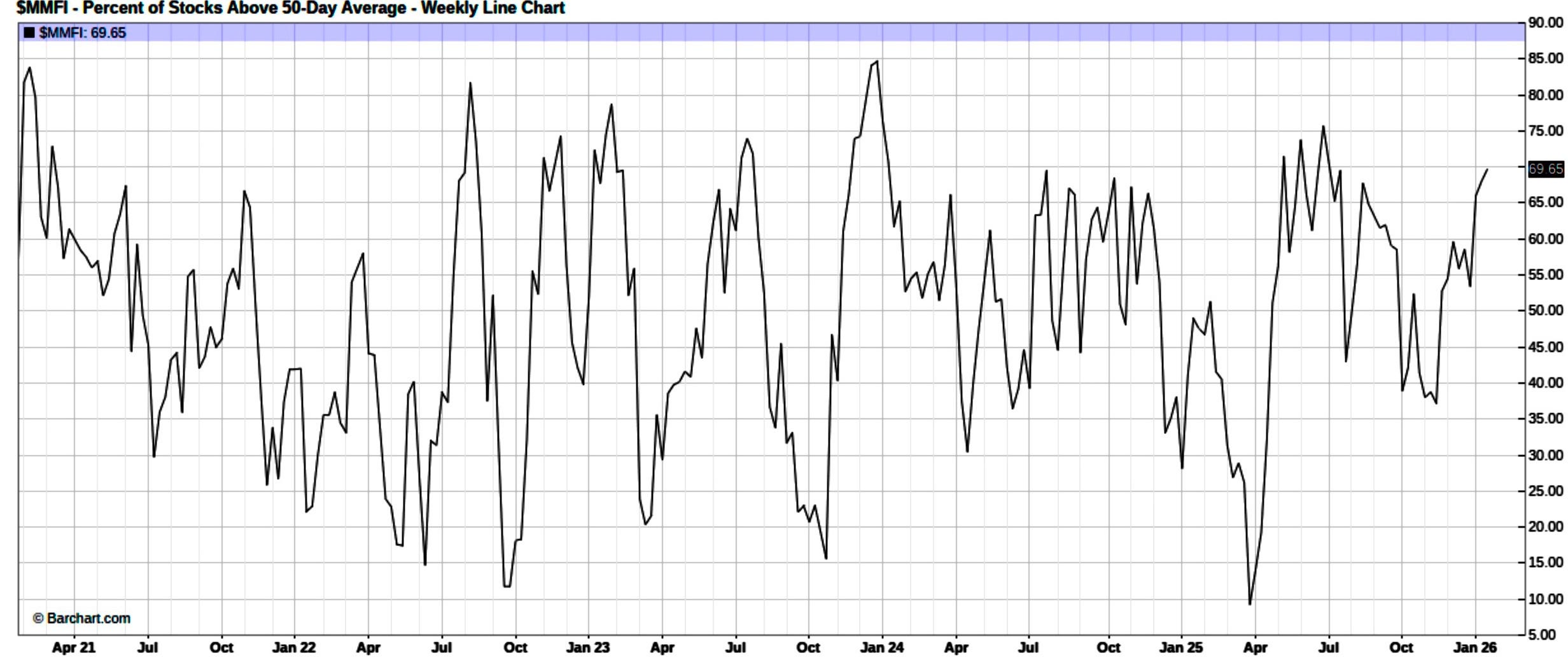 And the same can be said on a more broader timeframe as the % of stocks above the 50d currently sits at 69% too (Peak in last 5-years was December ‘23 near 85% following Powell’s initial signal that the Fed was ready to move toward a rate-cut cycle):