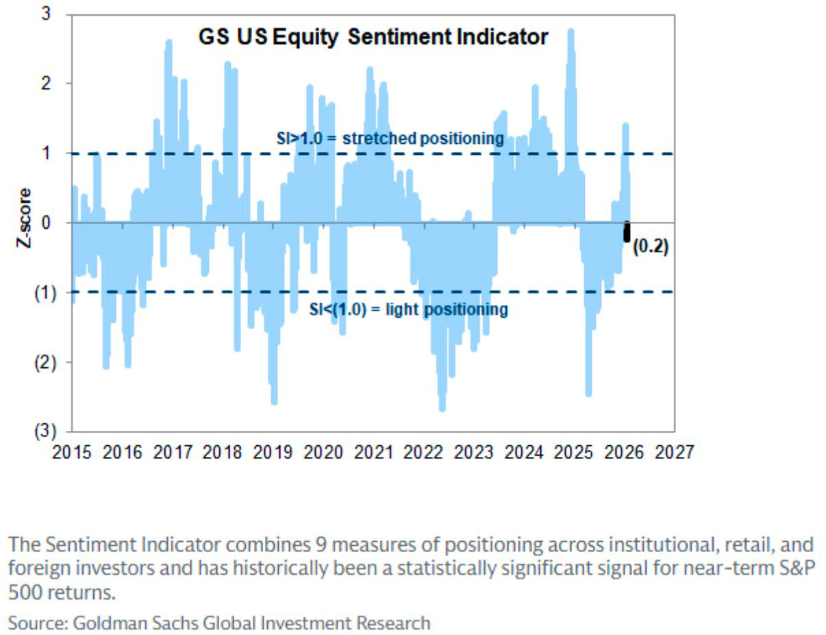 And to add on to this point, after having briefly worked into positive territory, the Goldman Sachs U.S. Equity Sentiment Indicator has fallen right back into negative territory thus emphasizing it continues to be a market filled with upside complacency: