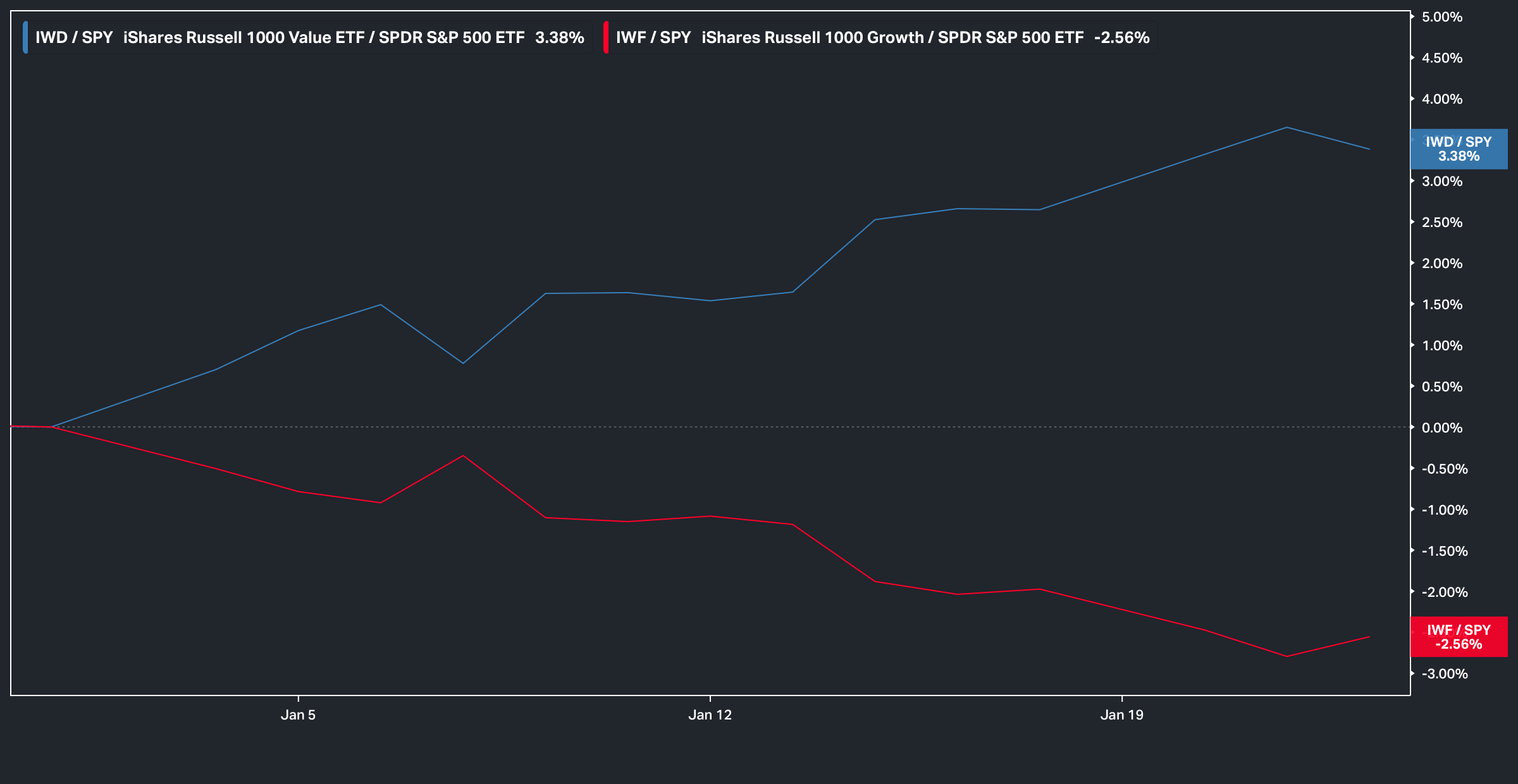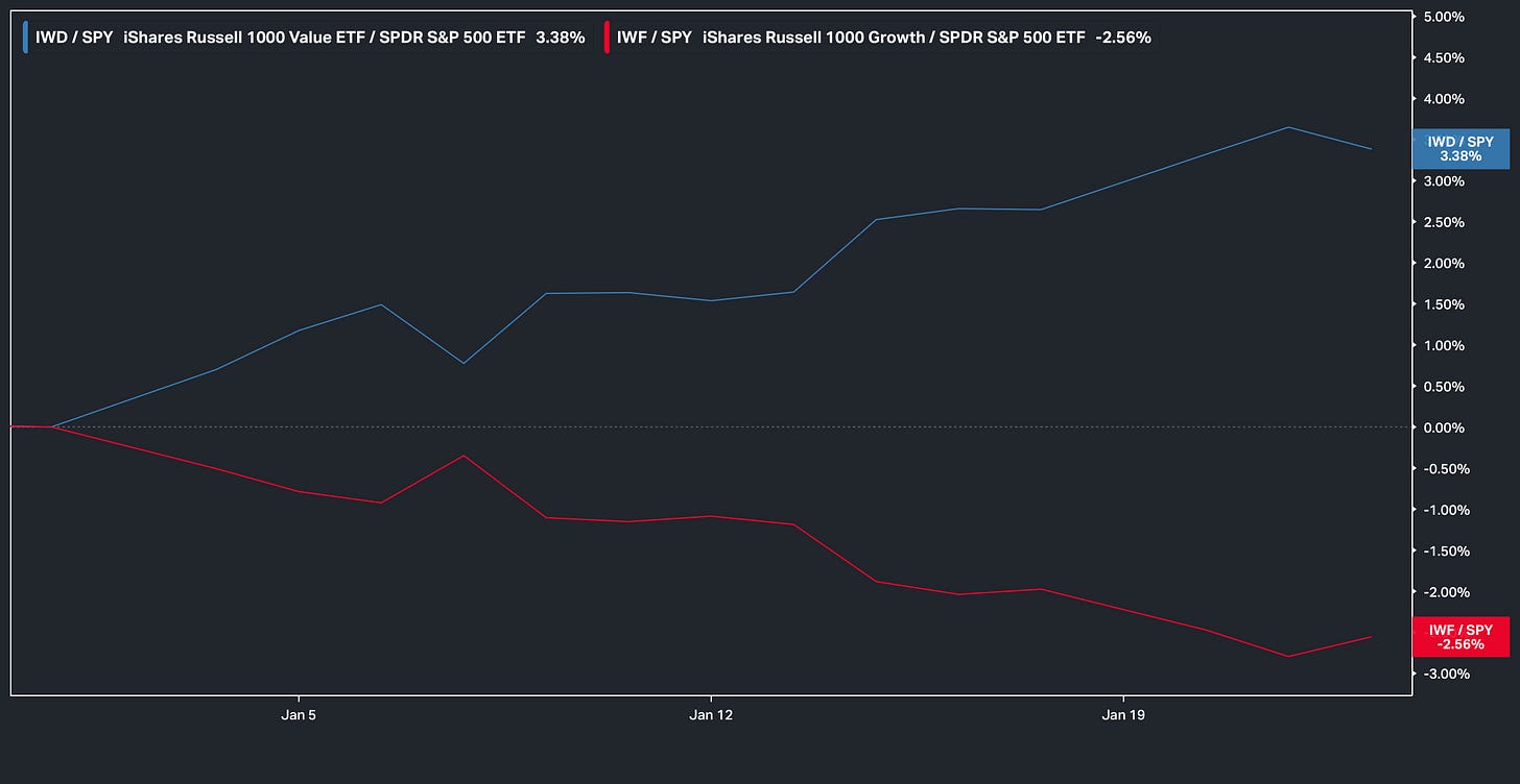 With that being said, despite the relative headline noise, the underlying dynamic continuing to make way year-to-date is the relative outperformance of Value over Growth (Cyclicals & or ‘Real Economy’ names outperforming) as we’ve now encroached a near 6% spread between the two: