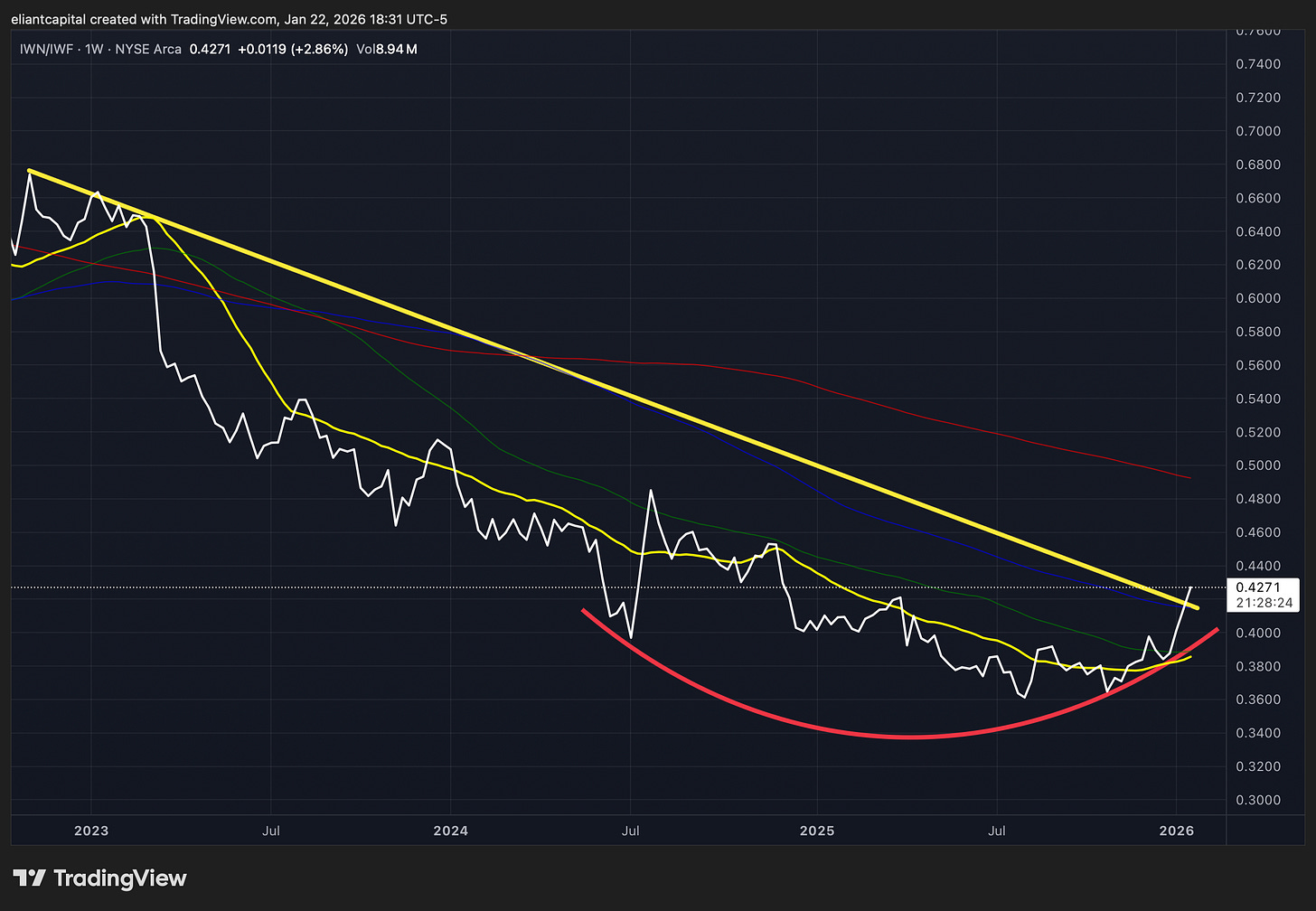And another chart highlighting this underlying dynamic is the Value/Growth chart below which has just recently posted a 3+ year breakout: