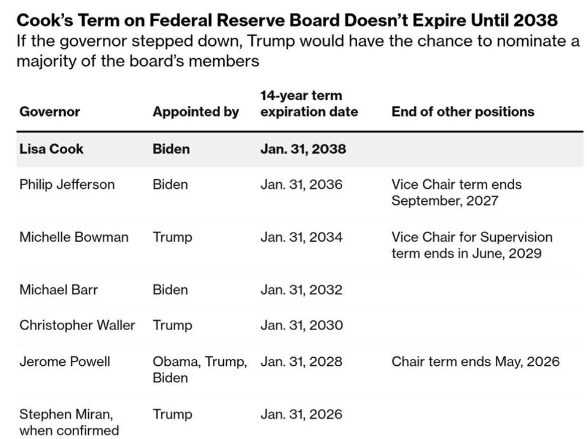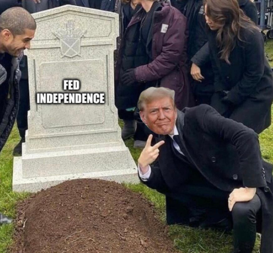 And at the end of the day, if Trump were to successfully remove Cook, the risk of the Fed losing independence essentially becomes nearly inevitable as Trump then gets to pick the new Fed Chair in whom will replace Powell & Trump has made it pretty clear he plans to pick an individual whom wants to cut rates / ease (Admin indirectly influences policy).