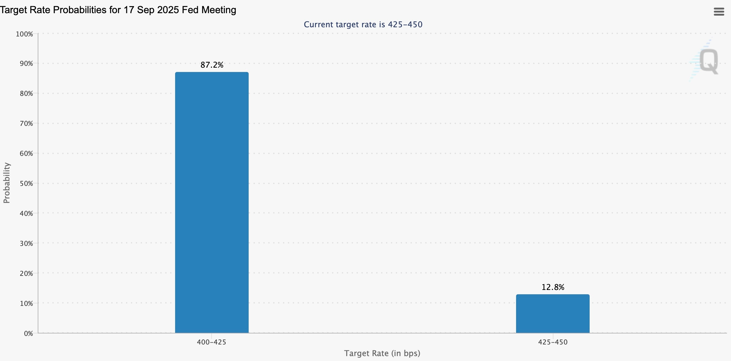 Leading up into PCE on Friday, as of now, rate-cut odds for September sit just above 87% & Powell made it pretty clear that although there may be inflation in the interim, the general expectations are for it to be ‘transitory’ / a one-time price shock & the bigger downside risks are more so apparent within the labor market / growth so barring a scorcher of a PCE print, it seems likely that the path for a September cut will remain… the bigger deciding factor *could be the August jobs report next week & IF it were to come in weaker / even bigger revisions, a 25bps cut would be fully solidified whereas we may even start to see odds for a 50bps cut shift higher / markets may start to price in 3-cuts for the remainder of the year (currently pricing in 2-cuts).