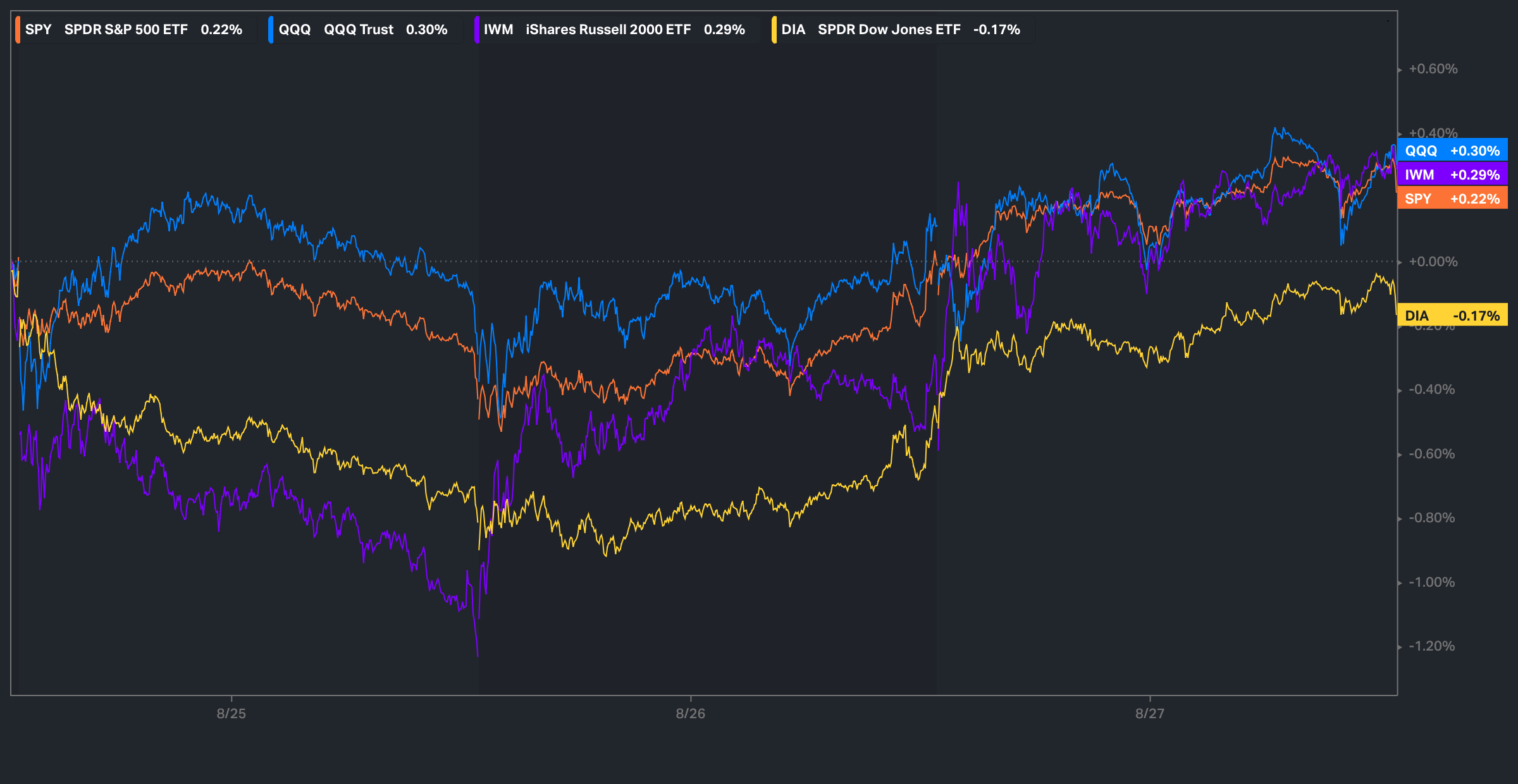 It’s been a relatively quieter start to the week in regard to economic data / general event risks & with Nvidia having reported after-hours & no shocks / surprises from ERs, we just have PCE #’s ahead on Friday & thus far, the Q’s along with Small-caps have been the ‘best’ performing of the indices, granted, both are only trading slightly higher by 30bps so not too much to write home about whereas the Dow thus far has been the ‘laggard’ on the week although only sits lower by 17bps… low vol classic round off to Summer action.