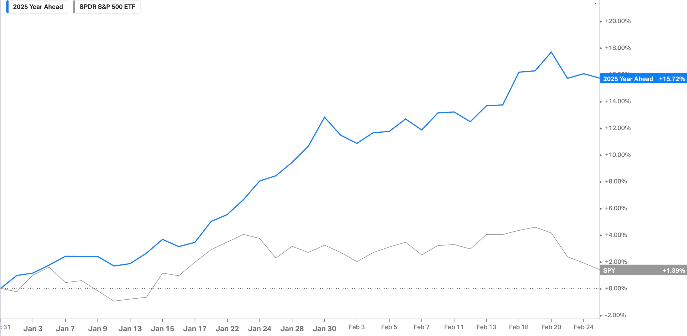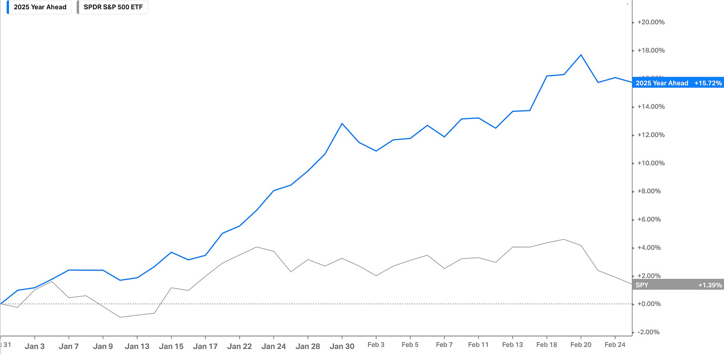 We’ve benefited largely from the recent dollar weakness these past couple of months given our OW exposure towards EMs & we put that trade on fairly timely (upped our exposure) in the beginning of December & it’s been a pretty great hedge given 20%+ of our book is allocated towards the names discussed within the ‘25 year ahead & a big portion of that was dedicated towards EMs (many of which are paying 8-10% yields and are trading 15-20% on the year & our biggest long, CIB, being nearly up 40%). The outperformance speaks for itself.