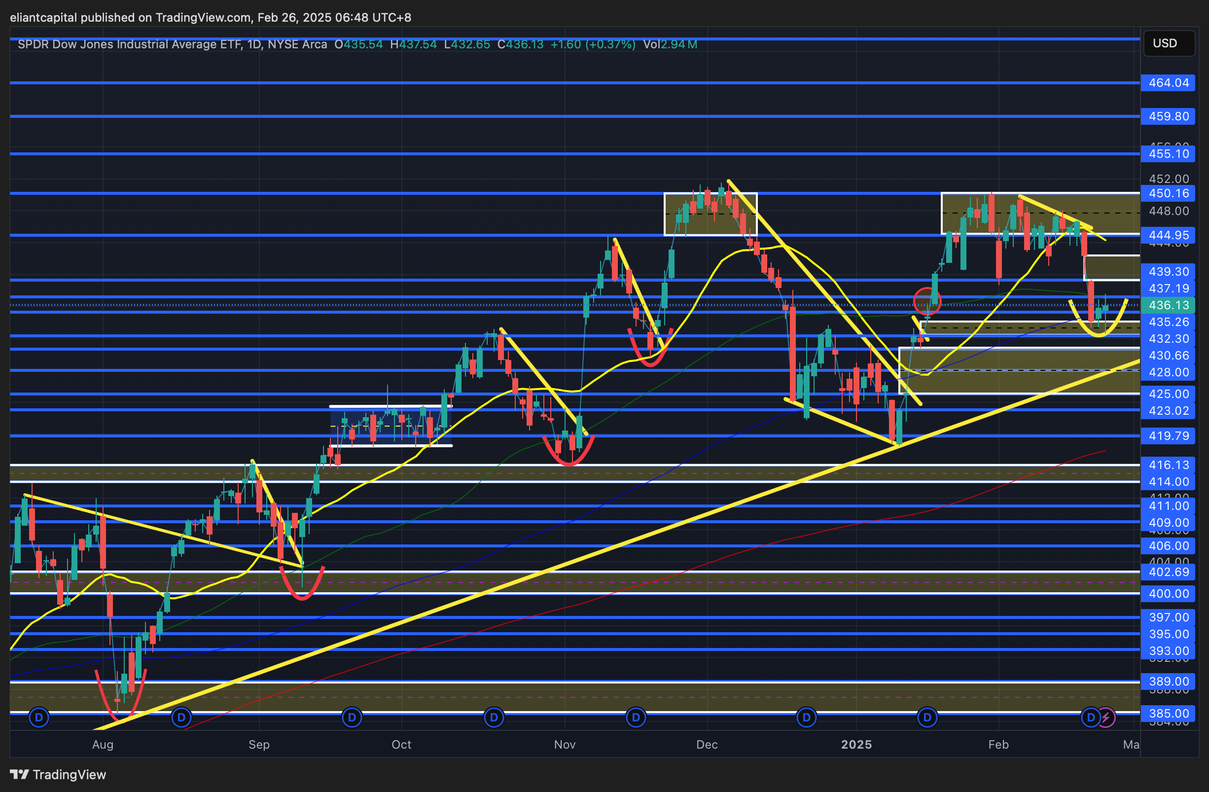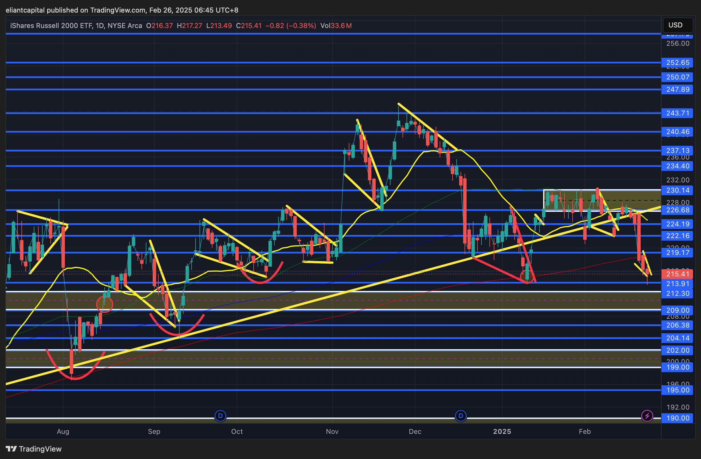 As of now, the Dow has been the best performing index on the week & the only positive index at that… last week, 450ish once again proved to be a stubborn resistance leading to this recent down move, but ultimately, DIA has found support in the mid-430s & just below is a MAJOR CPI bull-gap from early January (430ish) & that should be a bigger support zone if it were to be tested & as long as the growth scare narrative doesn’t see followthrough (recent fears prove to be overblown), that gap should continue to remain supportive. I do think bulls still need to reclaim 440ish on the upside to see some sort of followthrough / continuation to the upside, as otherwise, we may continue to see pops get sold until DIA digests this recent move given the technical damage that was done (island top gap above).