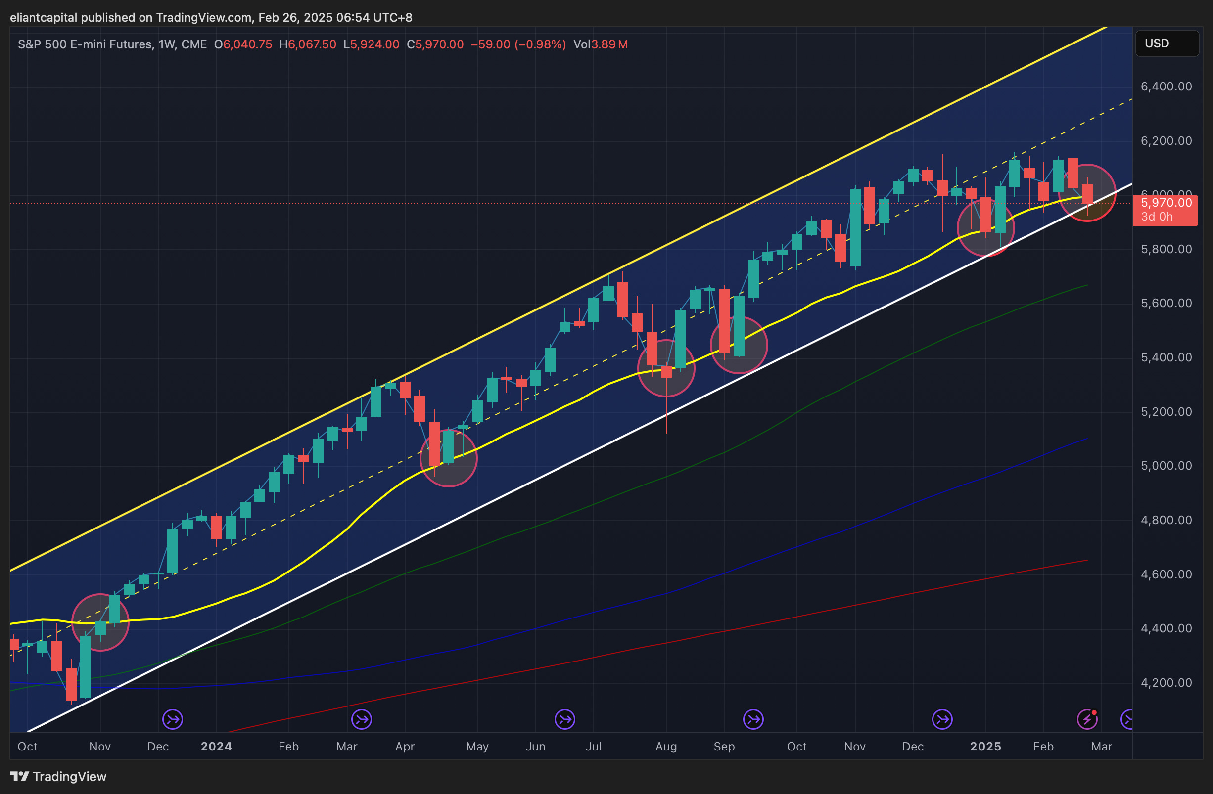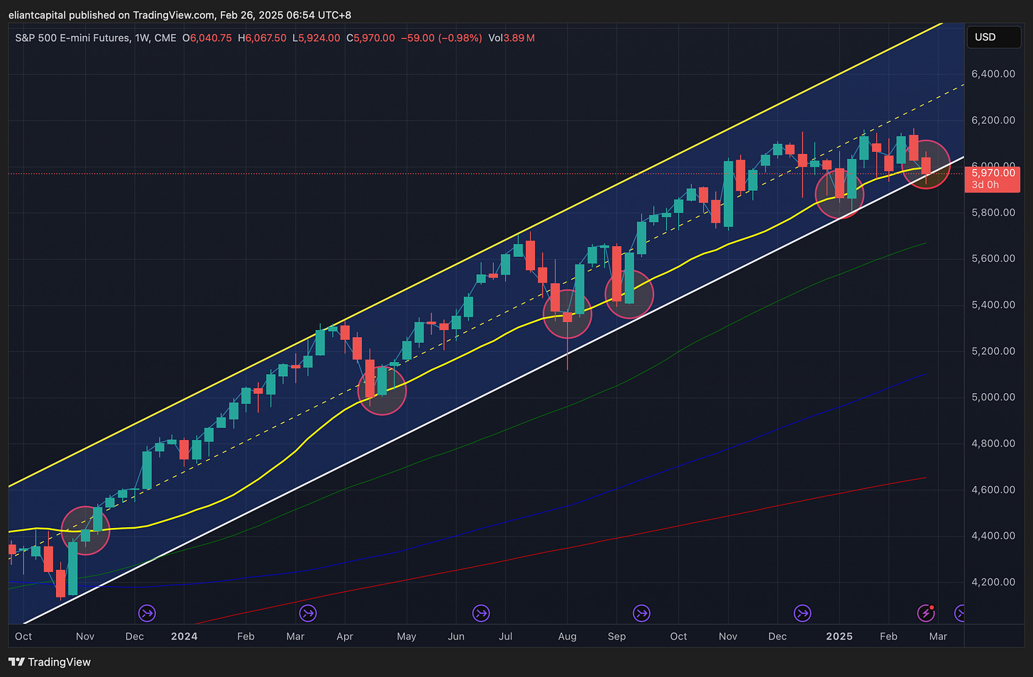 In regard to Spooz, as the week has kicked off, Spooz currently is down just under 100bps on the week & has made its way back to the 20wk along with the bottom of the channel / support TL which has remained as support since the late ‘23 bottom… fairly important pivot in general along with coinciding with the 20wk as well which has been support in several instances prior as highlighted below.