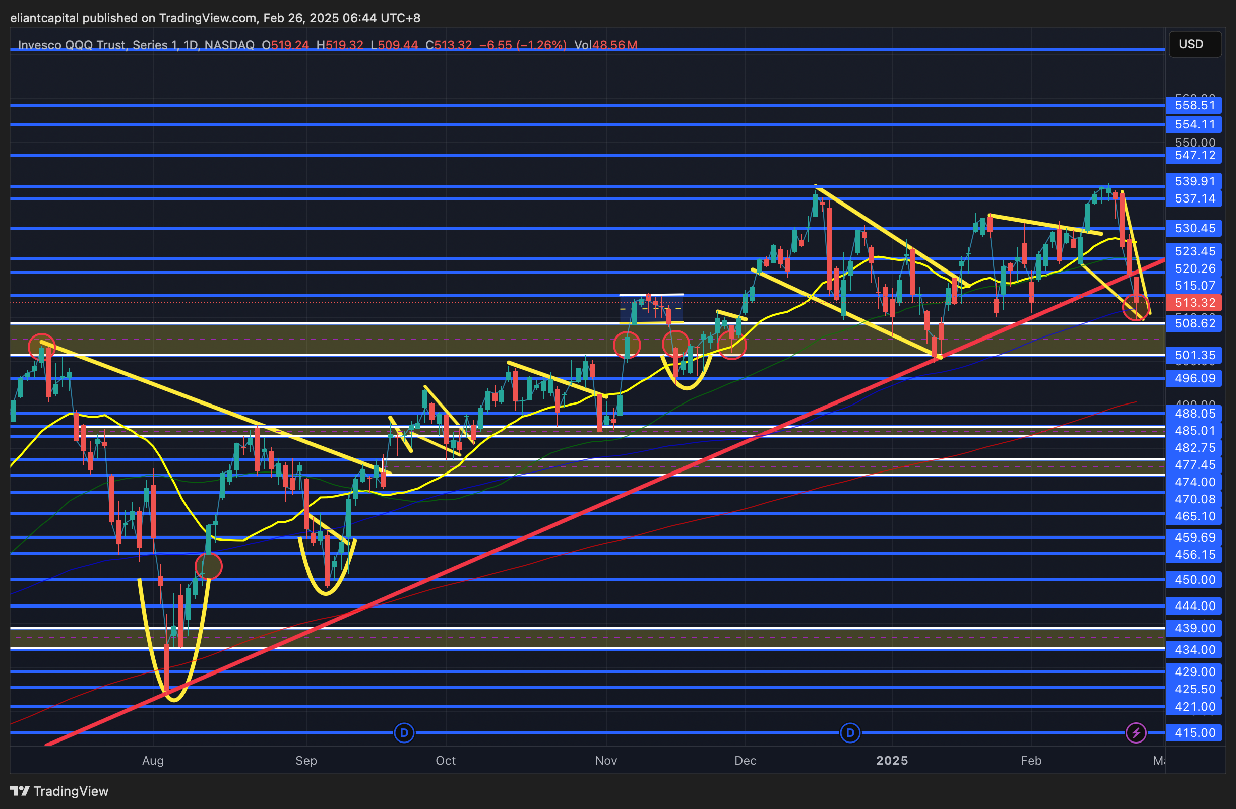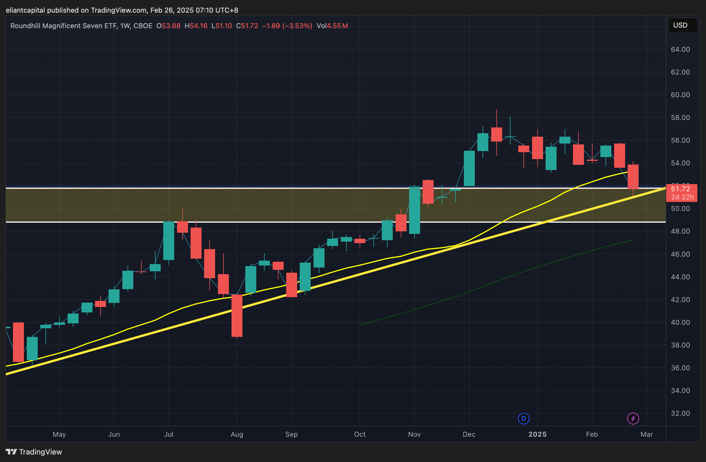 Similar story with MAGS (Mag-7 ETF), but as of now, MAGS has corrected 11%+ off these recent highs & has made it’s way back to a support TL dating back to early ‘24 whilst essentially backtesting this prior breakout (highlighted demand zone).