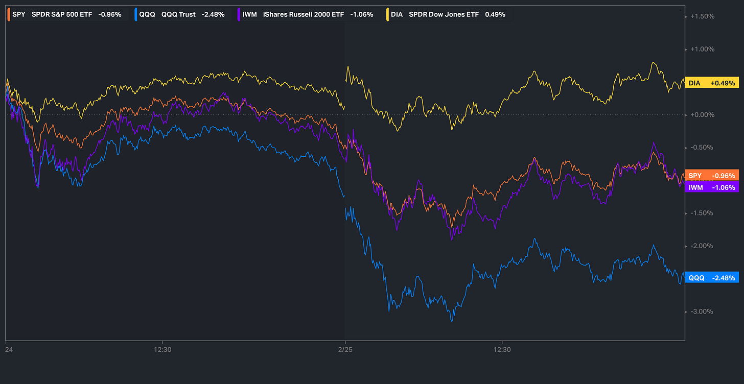 A bit of a volatile week to start within the indices, although there hasn’t been too much economic data of significance thus far, but today, the Consumer Confidence Index fell to 98.3 vs 102.5 est. & 105.3 prior & the drop-off was mostly driven by weak sentiment on the job market… again, we more so have continued to see the shift from inflation worries to growth worries these last couple of weeks…