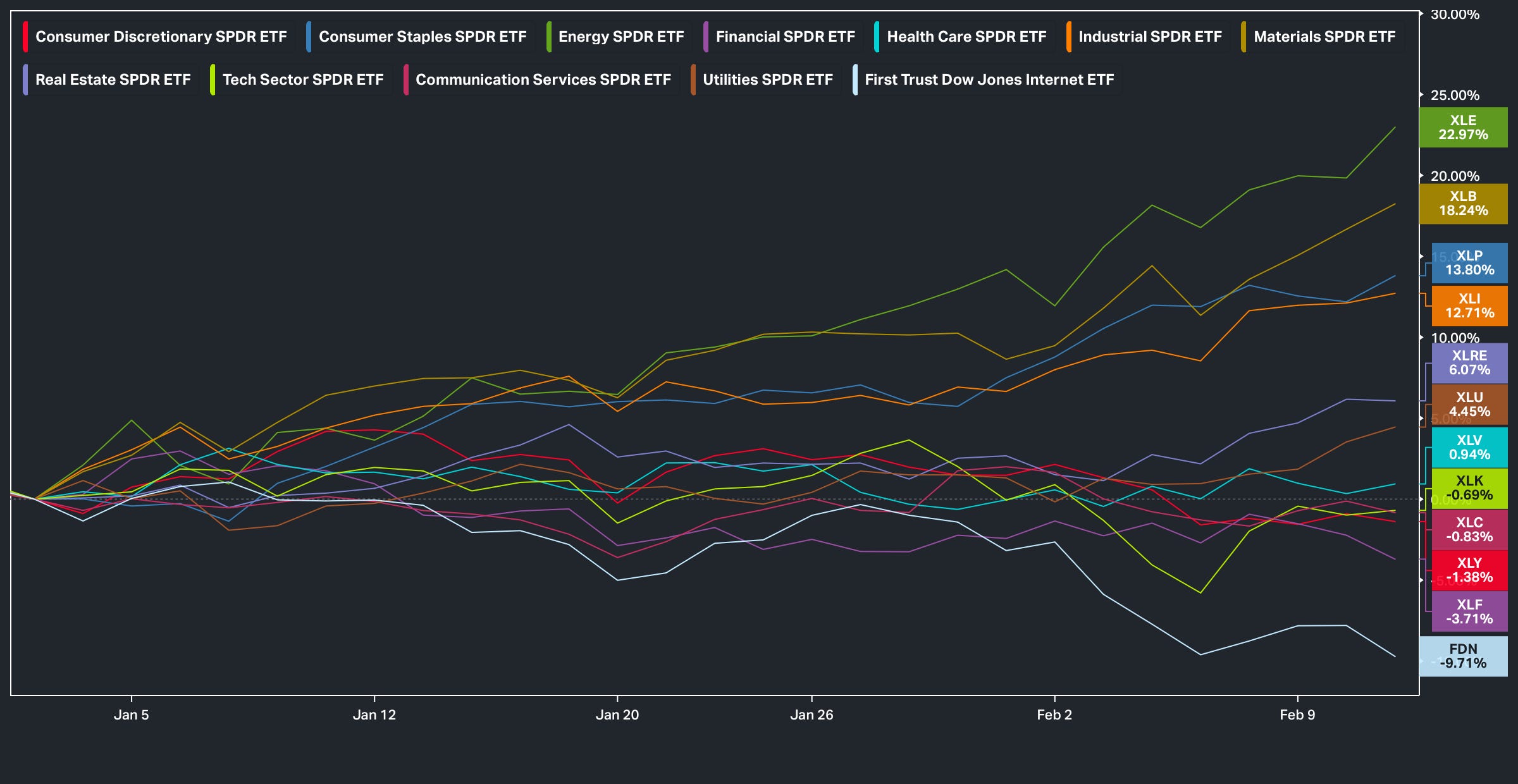 And as we’ve touched on these last few weeks but in regard to the pricing-in of an economic re-acceleration, of the 5 best performing sectors YTD, 4 of them are Cyclical: