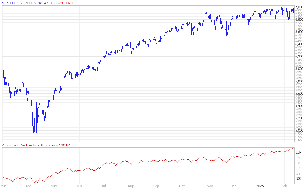 As a result, it’s led to quite the broadening of upside participation as despite Spooz being 100bps off the highs, the Advance-Decline Line has continued to churn and make higher-highs: