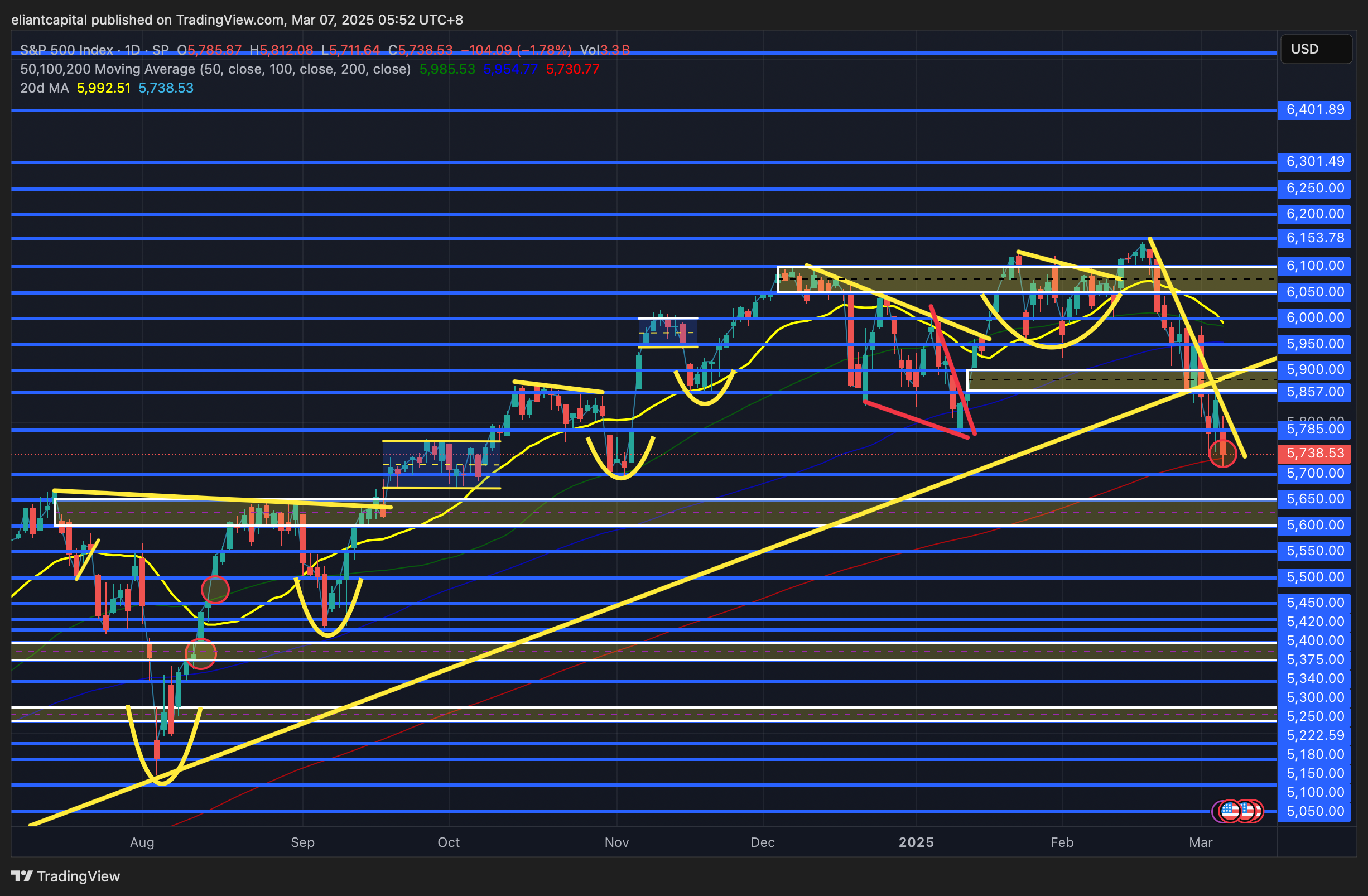 For any sort of material upside, as of now, Spooz does still remain in this steep downtrend, but if we were to get a snapback rally off the 200d, do think we see Spooz rally back towards 5850 / 5900ish before initially pausing & deciding where to go next from there… on the contrary, again, if downside were to see further continuation, I could see Spooz producing a look-below-and-fail move of the 200d as it snaps lower to backtest the ‘24 highs near 5650ish (also coincides with 50wk), before putting in a potential bigger bottom then leading to a potential snapback rally. Again, with VIX at 25+ heading into tomorrow, downside expectations are VERY high, so as long as tomorrow's job report isn’t an outlier print, we should see Spooz / general indices catch a bit of relief.