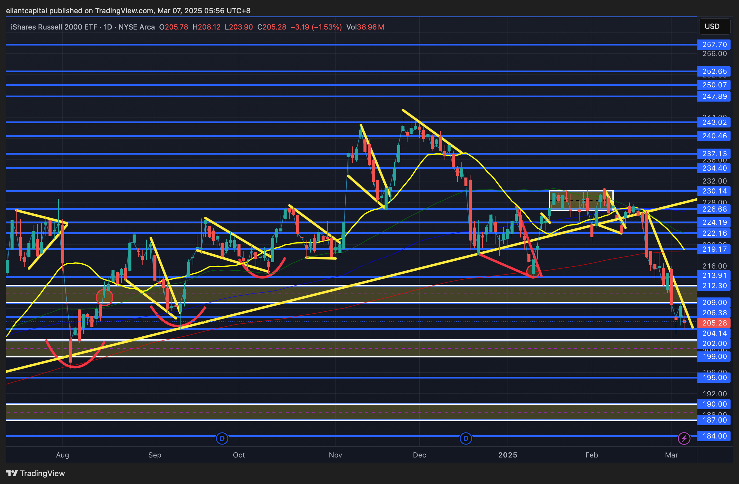 On the contrary, if we were to see these recent local lows falter, we likely will see small-caps get the test of the 200wk just below near 200ish which should be a fairly big & reactive support & do not necessarily expect that support to give in easy & at the very least, it should produce some sort of violent snapback rally.