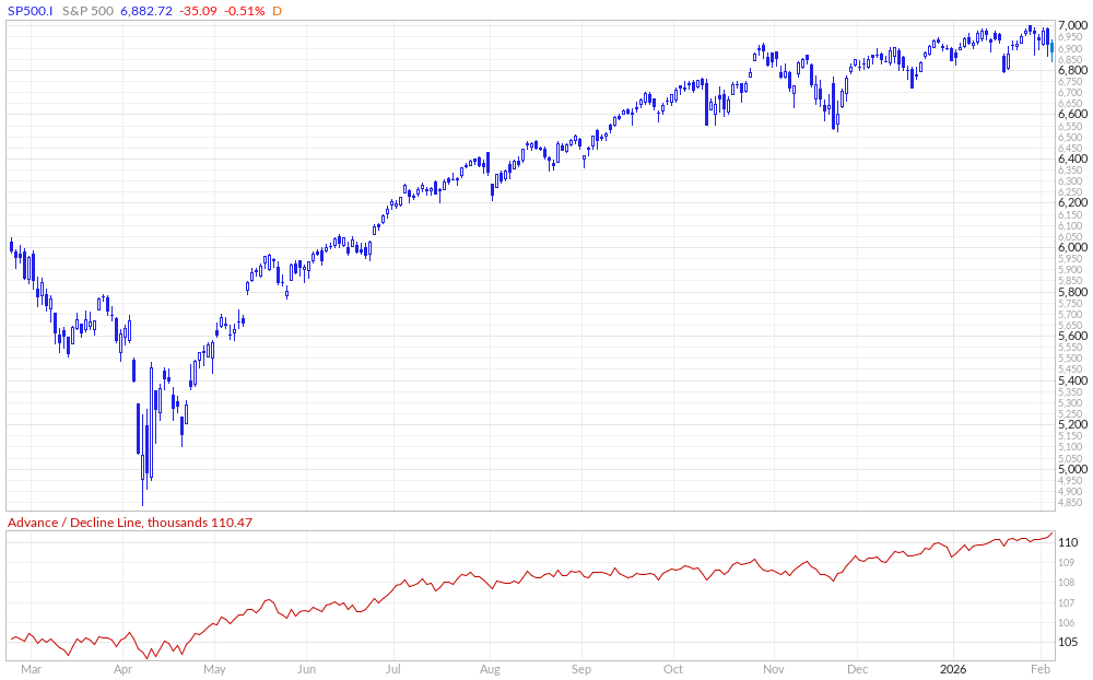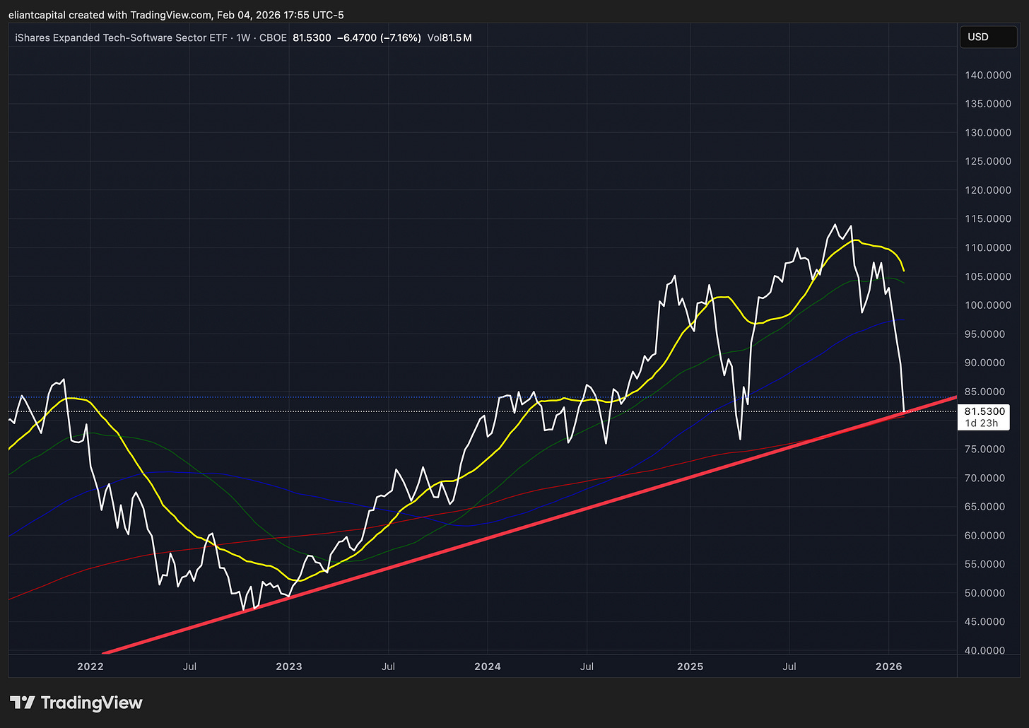 - And secondly, the apocalypse across SaaS and Tech, driven by the quick and swift pricing-in of terminal risk related to AI threats, has now led IGV to fall over 20% YTD, with the index making its way back to the 200-week moving average.