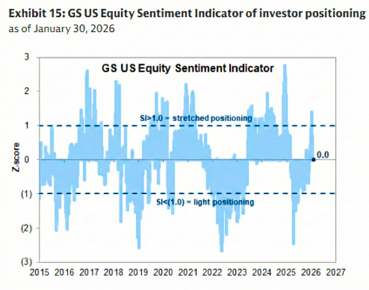 And lastly, before we jump into the remainder of the recap, despite the overall perception of market exuberance, Goldman’s U.S. equity sentiment indicator remains near neutral & only marginally above negative territory.