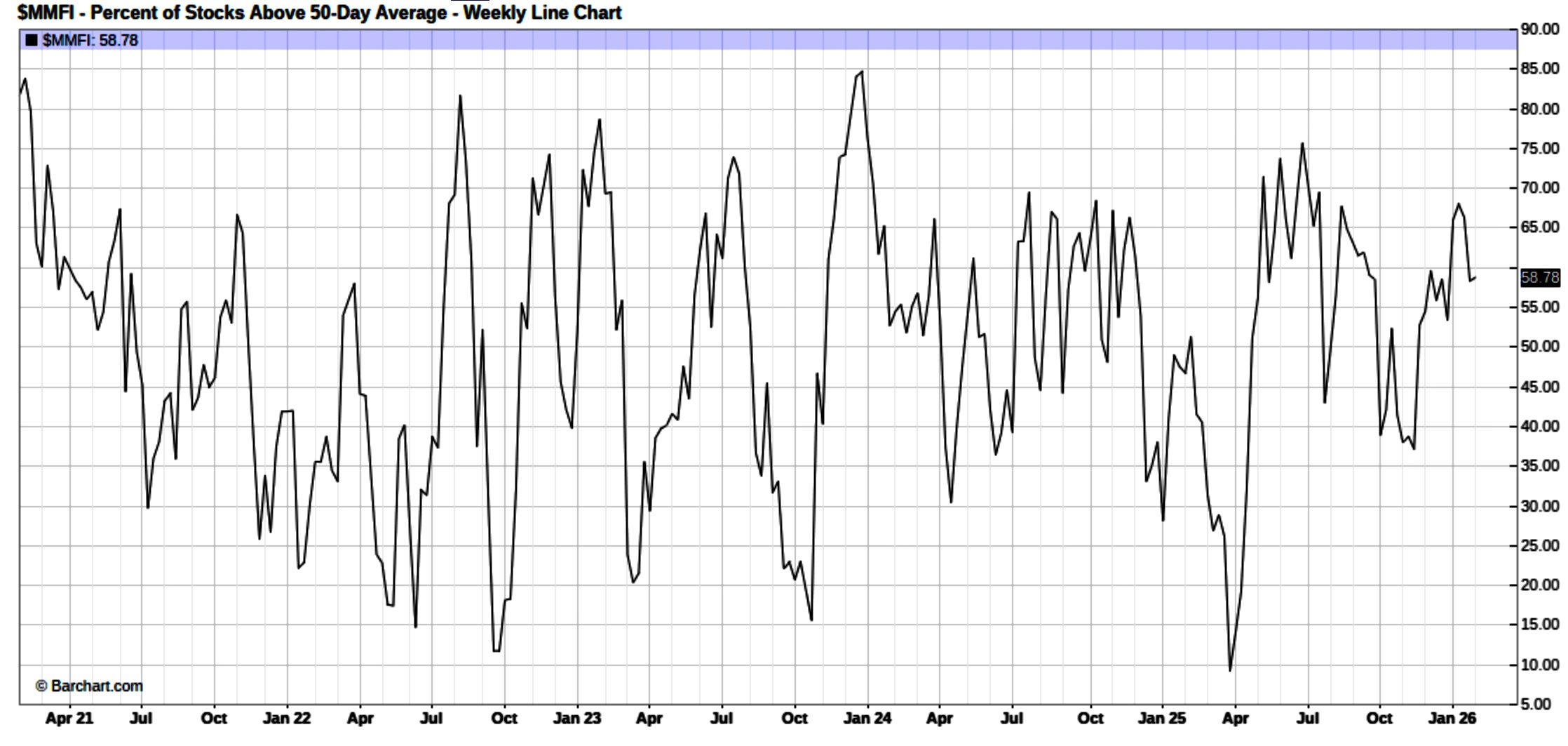 And with that being said, this underlying dynamic mentioned above can be partially seen below as despite both Spooz & the Q’s having performed lackluster as of late, 50% of stocks still remain above the 20D which still is a more neutral signal rather than overbought & or oversold:
