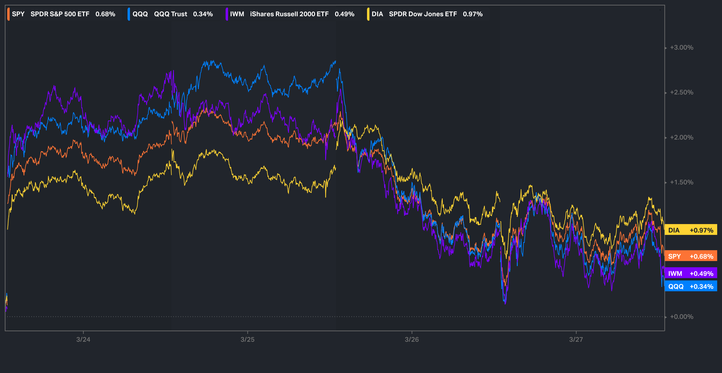 Despite the volatility these last couple of days, the indices still remain positive on the week… quite the perspective when you zoom out on the week. Majority of the recent losses these past couple of days have been due to the Semi / Ai trade unwinding & or remaining pressured due to Downgrades / Bearish notes out of TD Cowen along with generally poor technicals & we also still have uncertainties surrounding tariffs as the market still remains on edge as we near Liberation day into next week.