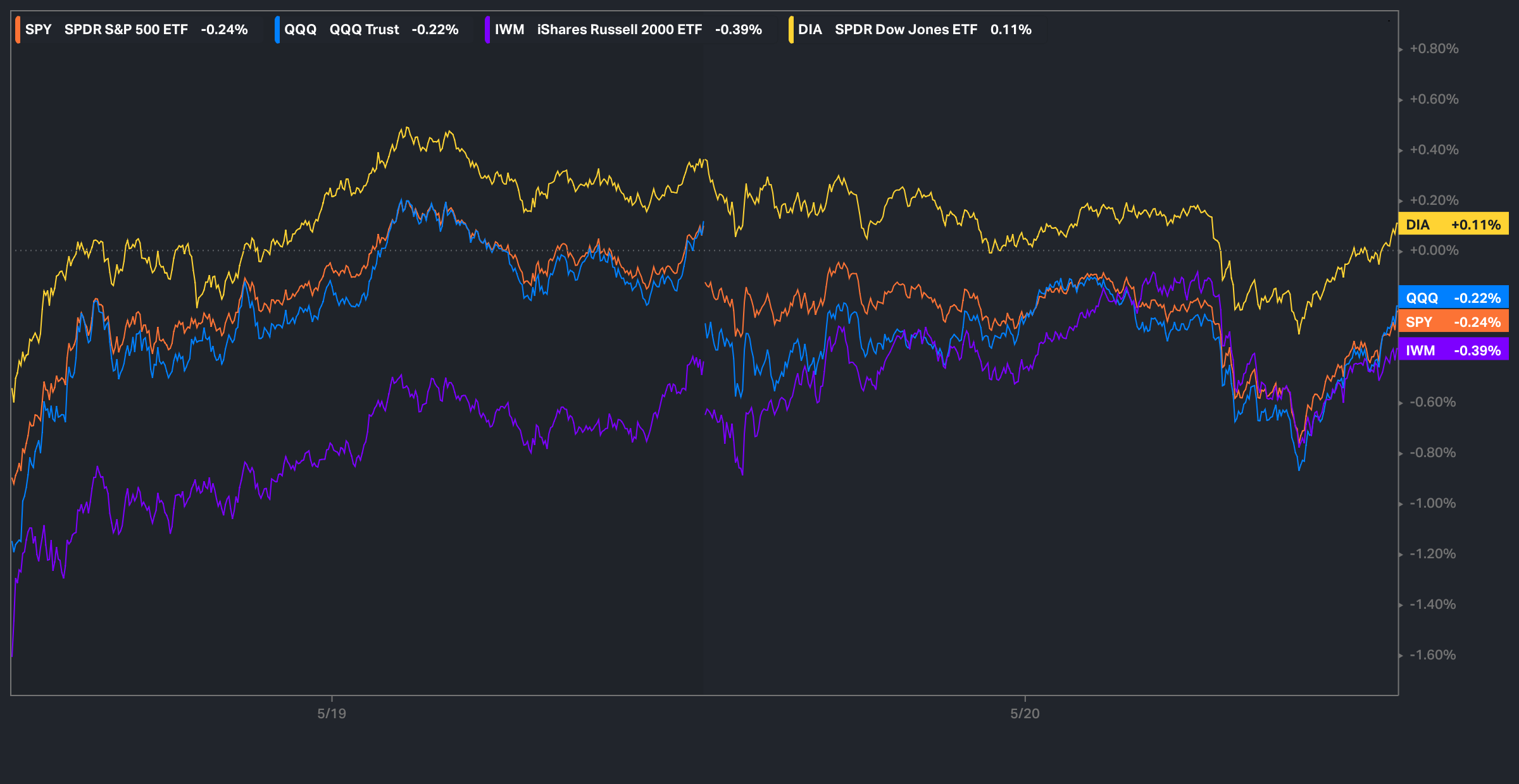It’s been a relatively quieter kickstart to the week as there isn’t much data of significance & volumes have been relatively lighter across the board given the upcoming holiday weekend, but as the week has kicked off, initially we saw the indices gap lower following the downgrade out of Moody’s on U.S. credit rating but the dip didn’t last long as indices did end up turning green on the day yesterday & all of the indices are essentially flat / slightly lower on the week with the Dow “leading” the way up a whooping 11bps whereas small-caps are the “worst” performing index on the week as IWM sits lower by 39bps… a snooze-fest of a week thus far.