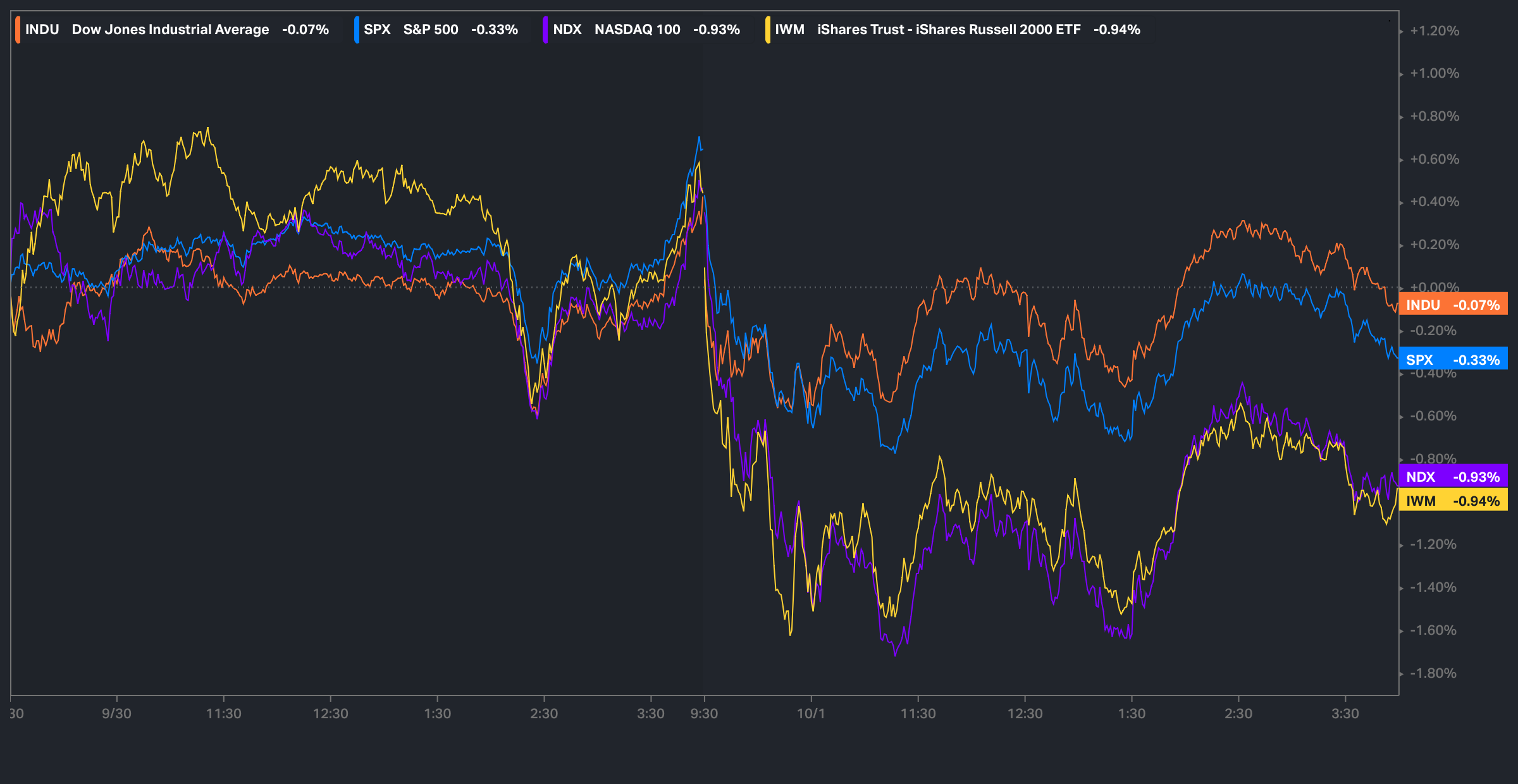 October & Q4 has kicked off with tensions once again arising in the ME & as the week has kicked off, Small-caps & the Q’s are the worst performers on the week down just under 100bps whereas the Dow and Spooz are leading thus far & are relatively flat / down just slightly on the week.