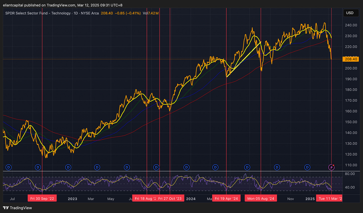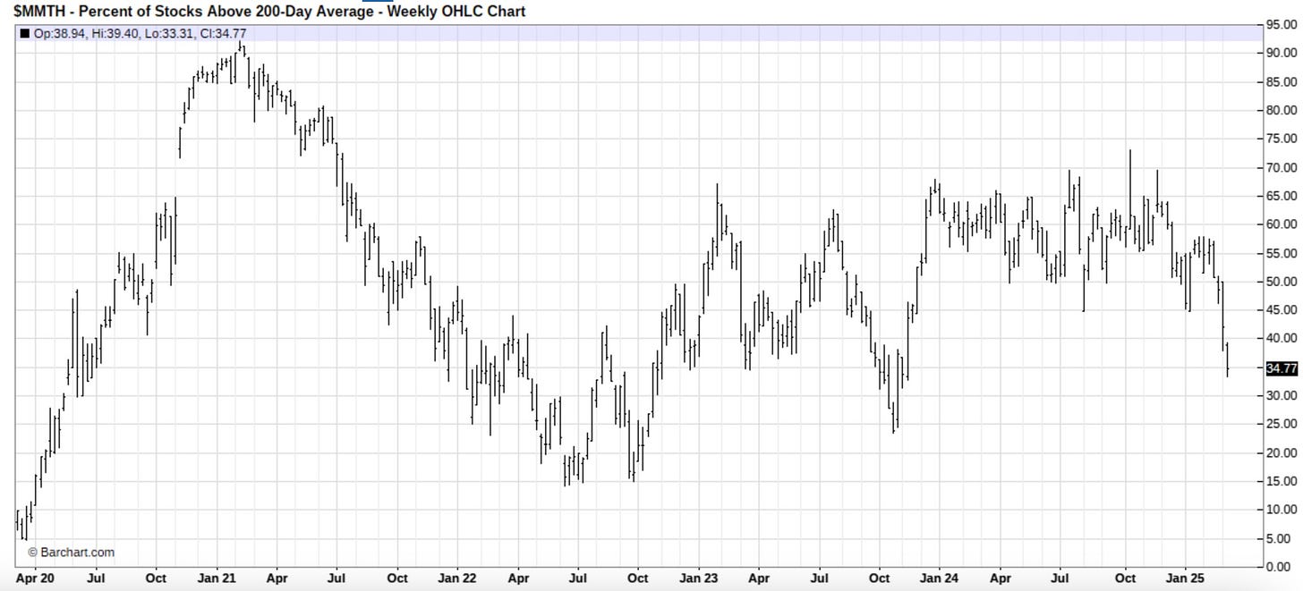 In terms of % of stocks above the 200d, the current % is sitting at 34%… again, sitting just above the late ‘23 lows although still is a bit off from the ‘22 lows… point being again, things are still quite extended to the downside & the markets are more so looking for a positive headline to have a relief rally, but they just haven’t gotten it.