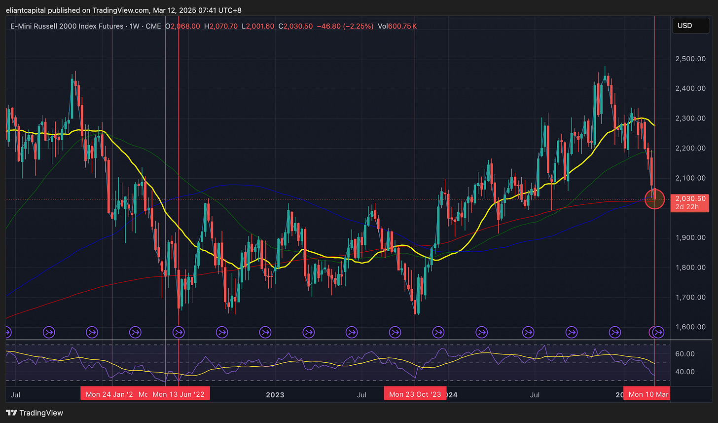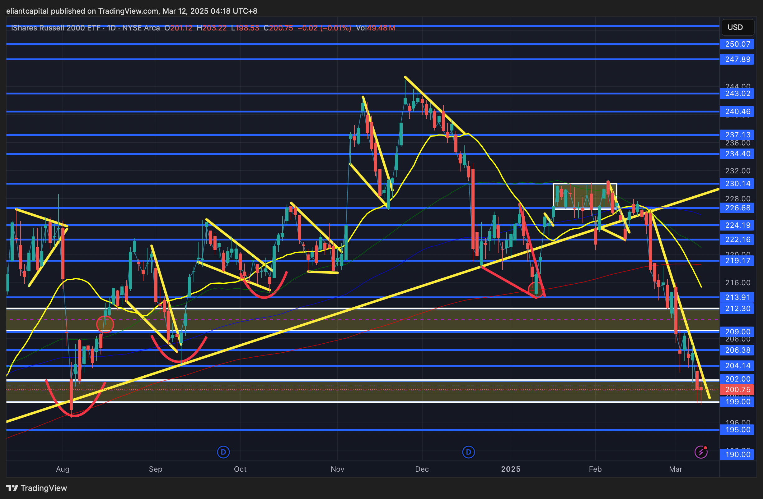 On the contrary, if we were to see small-caps falter below the 200wk / August ‘24 lows, we likely could see selling persist in IWM towards mid-190s, but again, I would be fairly surprised if we didn’t see a countertrend rally unleash beforehand (of course, barring another headline out of Trump / more uncertainties rising / growth fears escalating etc…).