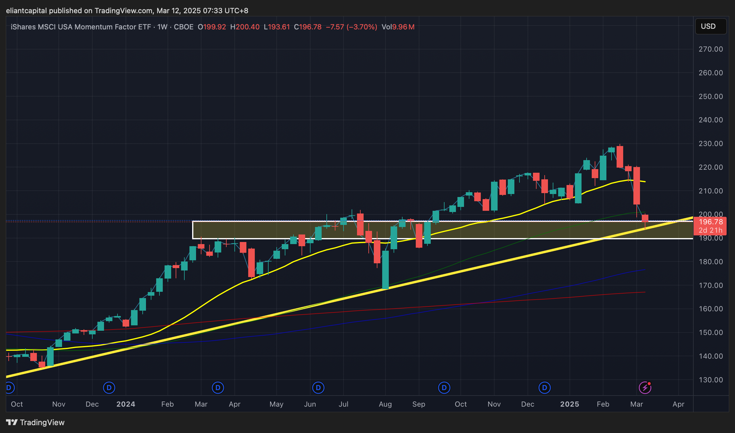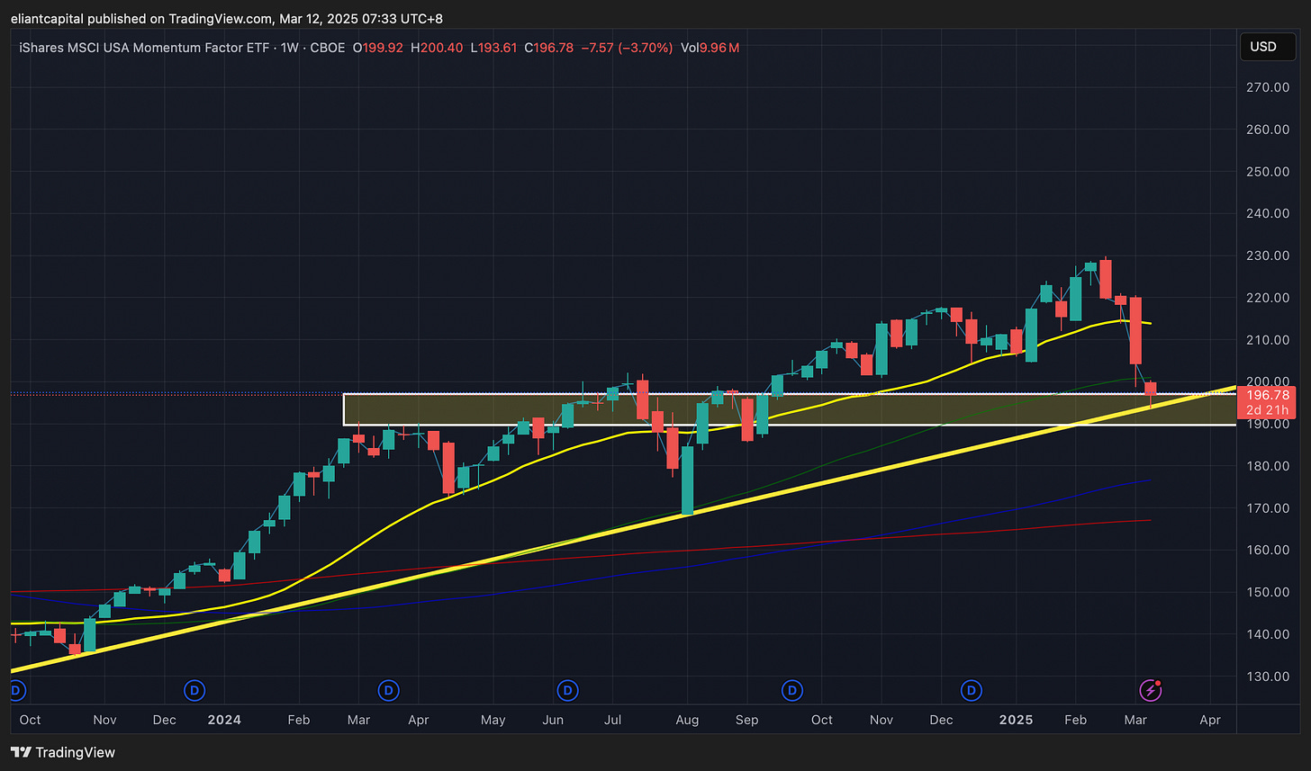 MTUM (Momentum ETF) is at a bigger point of confluence as it resides just above this longer-term support TL dating back to late ‘23 whilst also backtesting the Summer ‘24 highs… a likely interim bounce spot at a minimum.