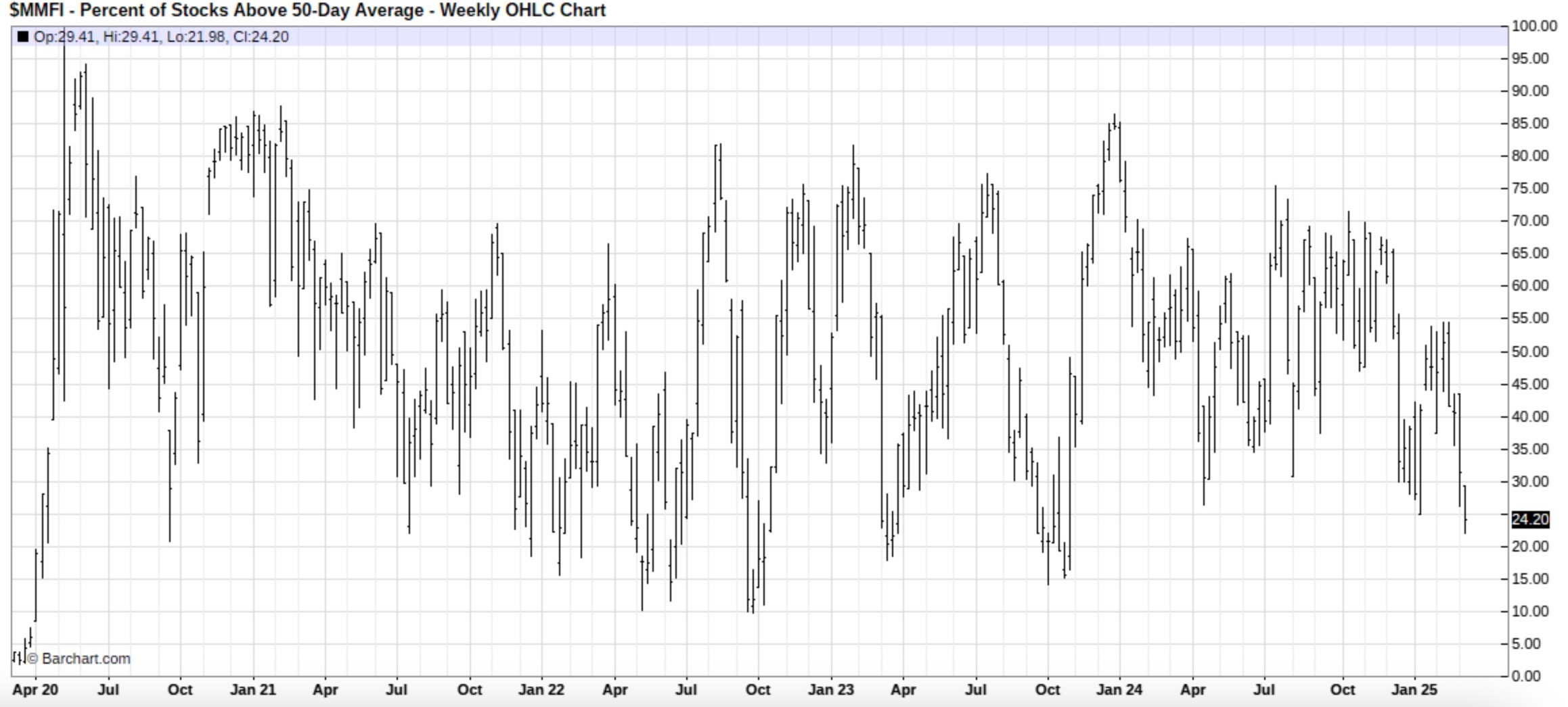 In respect to markets, I don’t think there is much of a doubt that things are oversold… the % of stocks above the 50d is currently sitting at 24%… just slightly above the late ‘23 lows & ‘22 lows… again, its fairly clear things are quite extended to the downside & prior instances of such extremes have led to bottoms.