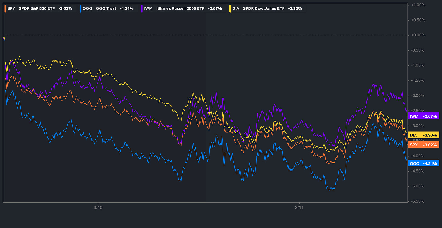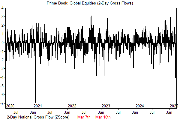 Quite the kickoff to the week in the market as the headline driven volatility remains… over the weekend, Trump spoke in a Fox Business interview & more so reiterated the same points; Tariffs may go up further / The economy is in a transition phase / I am not looking at the stock market / We want interest rates down etc… as a result, we had quite the down day in the indices across the board & it was the largest 2-day degrossing we have seen in the markets over the last 4-years.