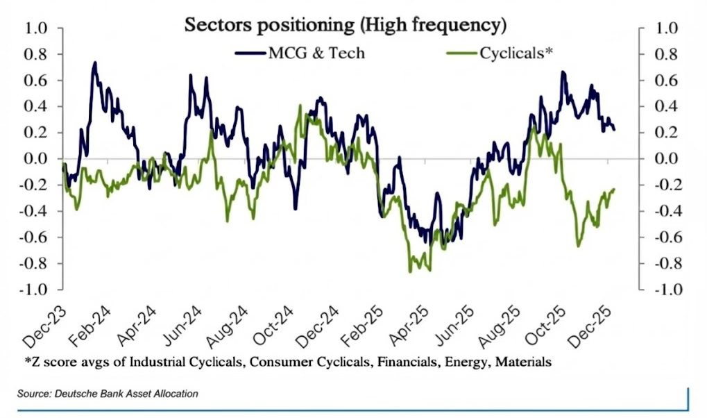 This outperformance / dynamic within cyclicals really started to amplify post Powell’s December FOMC speech & the move in such a shortened period of time has been quite aggressive YET positioning within cyclicals STILL remains quite underweight. Again, it’s more so just a testament to how under-owned the group is & this recent move has really just been mean-reversion.