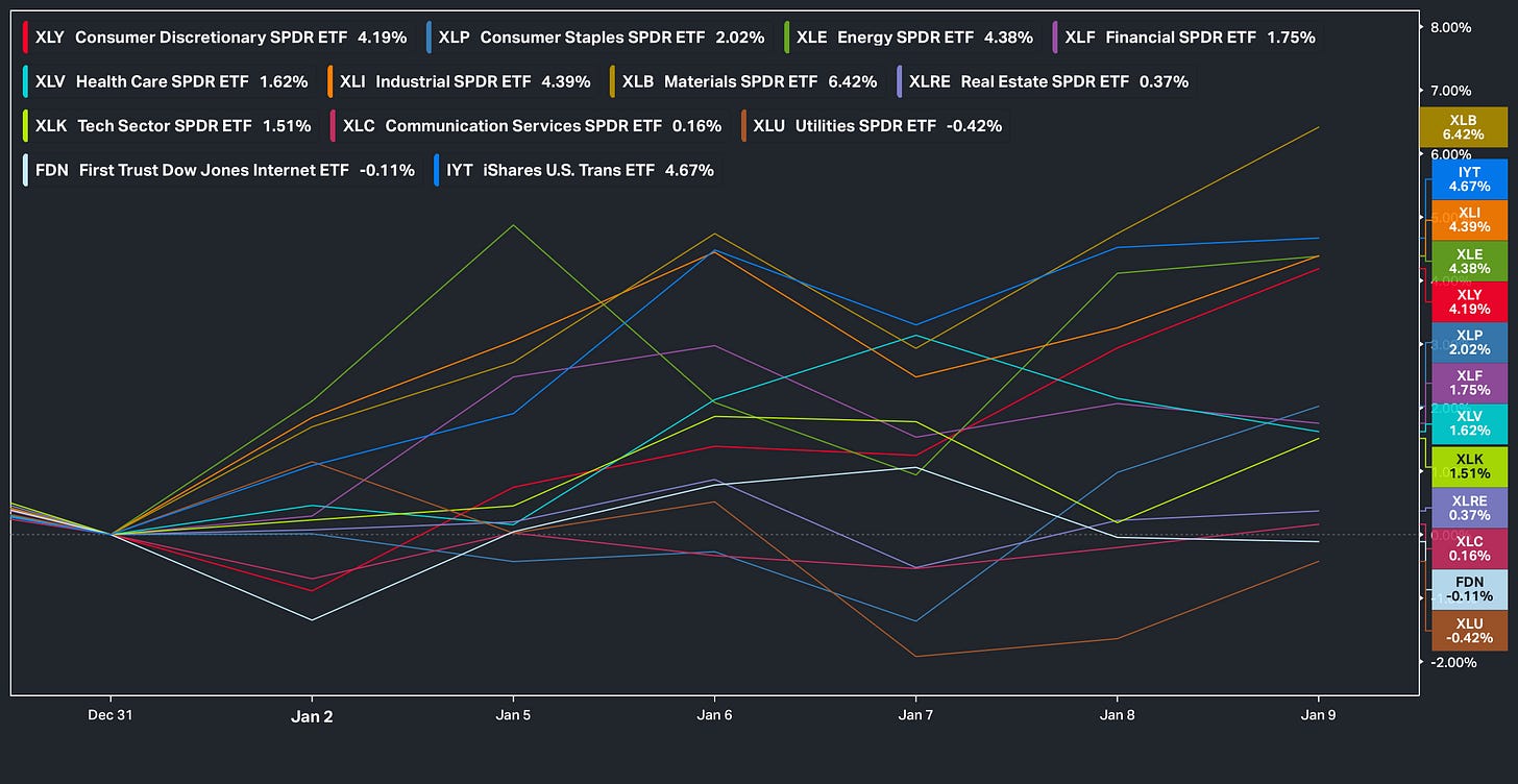 And in regard to sector performance, what are the top-performing ones year-to-date? You guessed it, cyclicals: