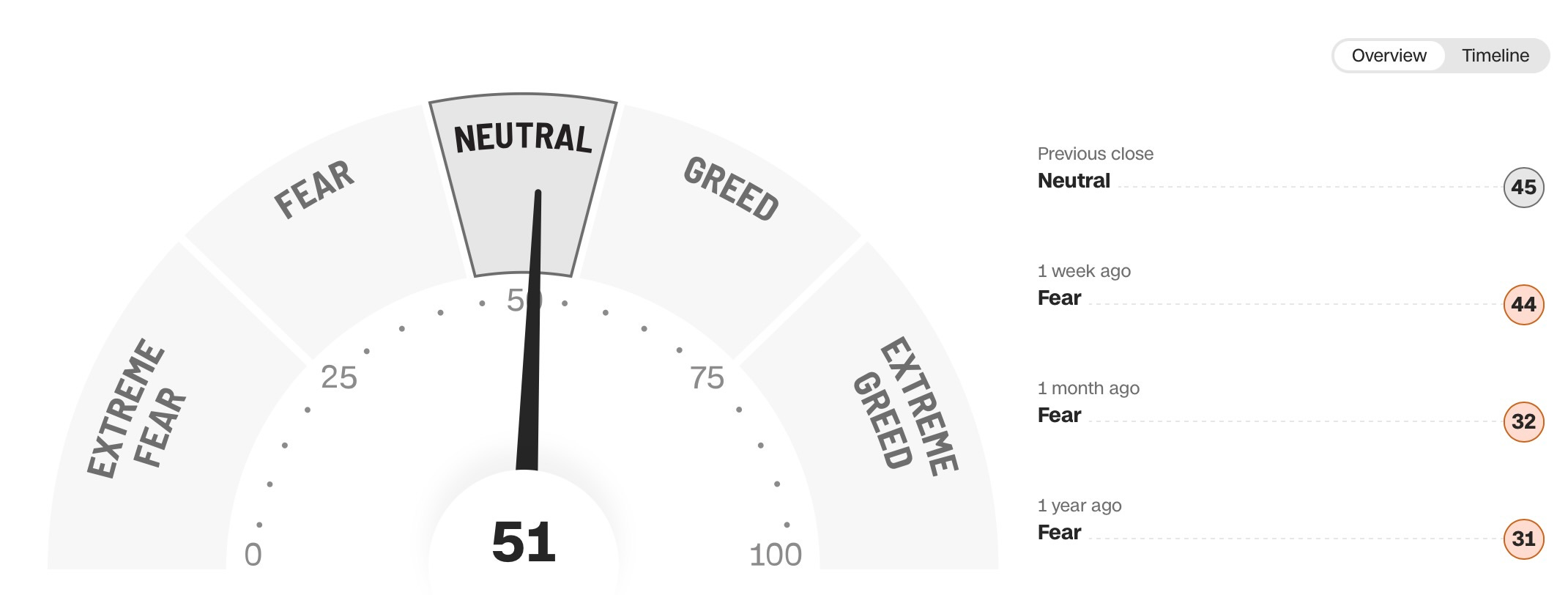 Having said that, despite shorter-term signals encroaching ‘overbought’ territory, the one interesting phenomenon that continues to take hold is the fear-greed index STILL remains within ‘neutral’ territory despite Spooz / Small-caps / The Dow having all made a fresh ATH this past week which leaves the Q’s as the only index in which hasn’t quite made a new ATH yet.