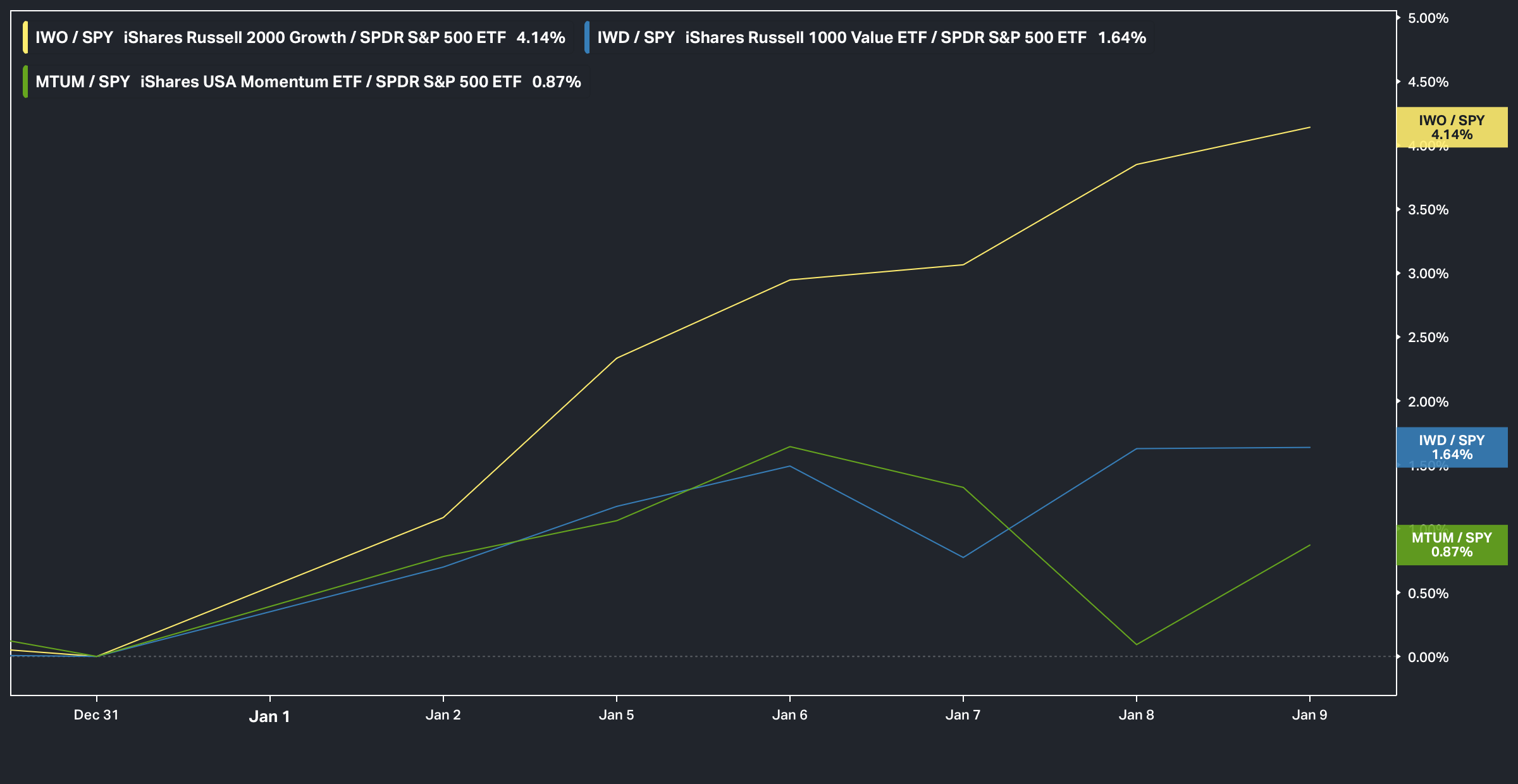 The chart below highlights this dynamic well as Small-cap Growth along with Momentum is posting quite the outperformance over Value month-to-date: