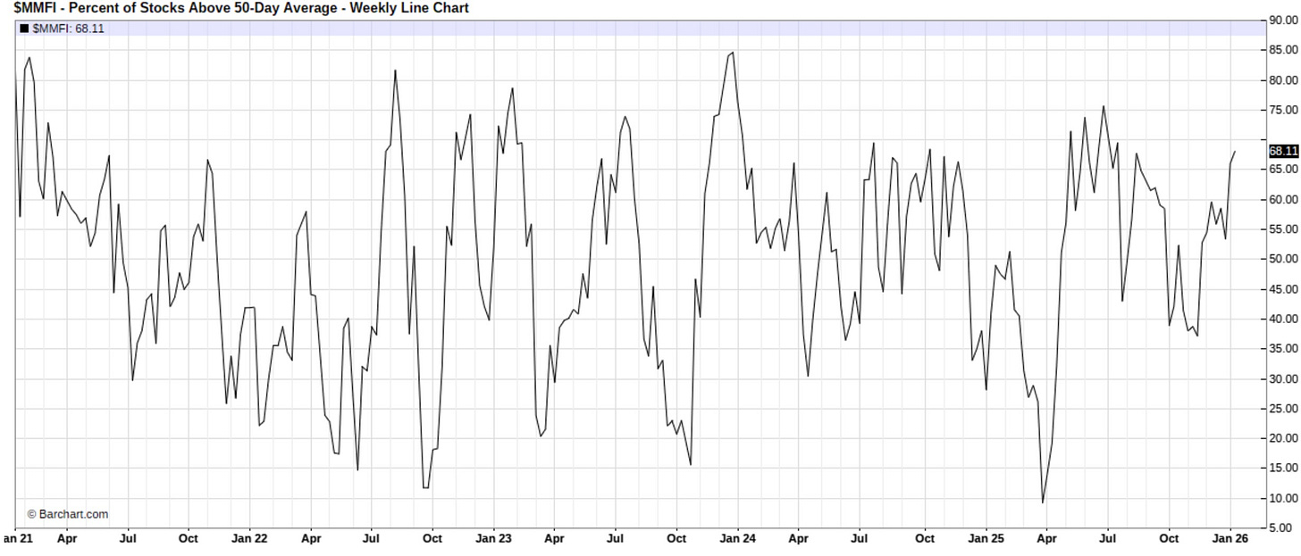 And for further evidence that conditions have normalized & are slowly starting to encroach ‘overbought’ territory, the Fear-Greed index finally printed into ‘Greed’ territory this past week, which prior to the post December-FOMC rally, ‘Greed’ territory hasn’t been seen since September ‘25 & we were more so stuck within the ‘Extreme Fear’ / ‘Fear’ territory for quite some time (3-months) given poor breadth along with the lack of upside participation.