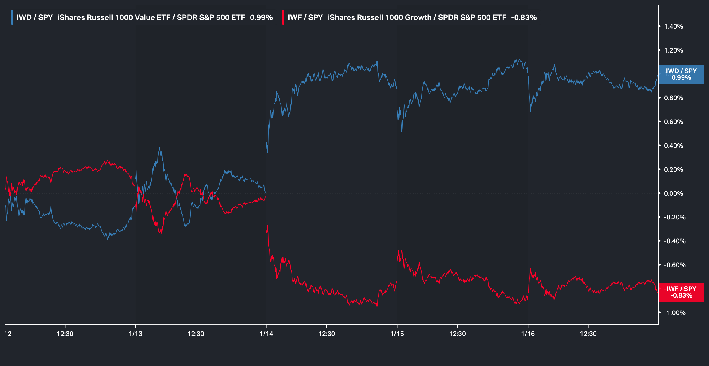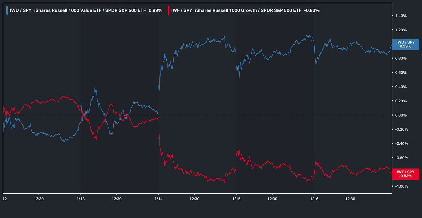 Nevertheless, the general theme on the week was mostly characterized by a larger ‘factor rotation’ which is made clear with the chart below given the spread established between Value & Growth: